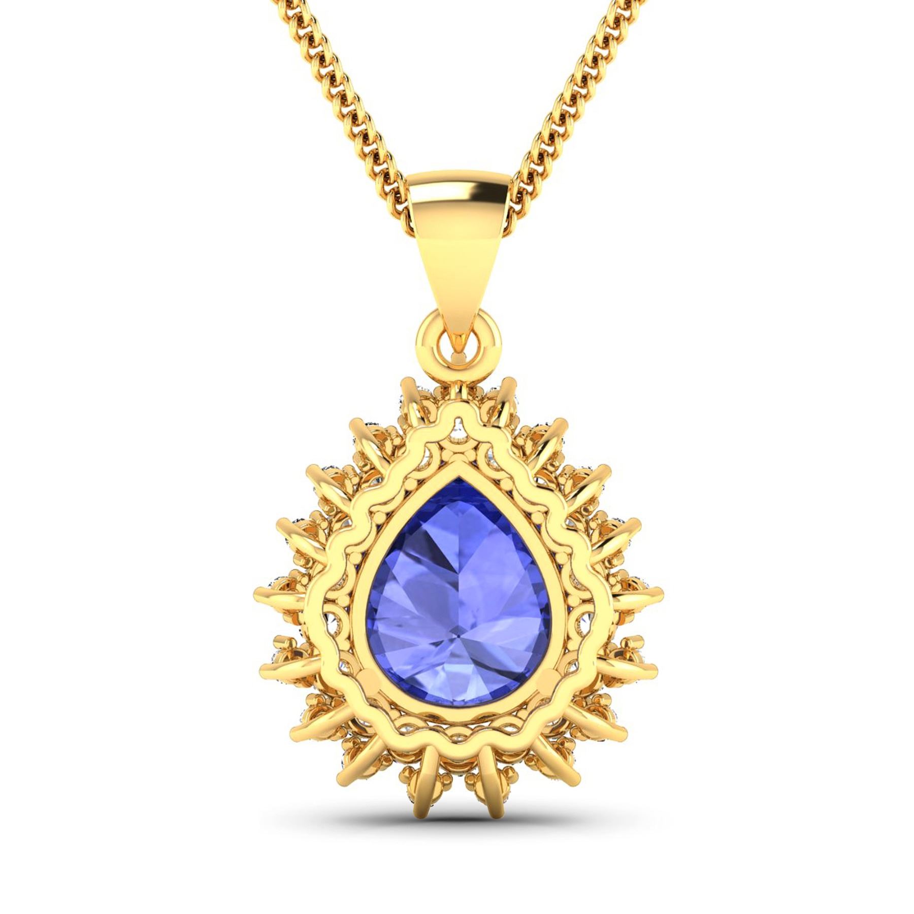 Tanzanite (AA+) Pears 11x9mm - 1Pc + White Diamond F/C Round 2.00mm - 18Pcs + White Diamond F/C Round 1.50mm - 19Pcs ( Diamond Quality : SI-2/HI ) Total weight of gemstone is 3.25cts. Total Diamond weight is 0.8cts. Total weight of this pendant is 3.24 grams.