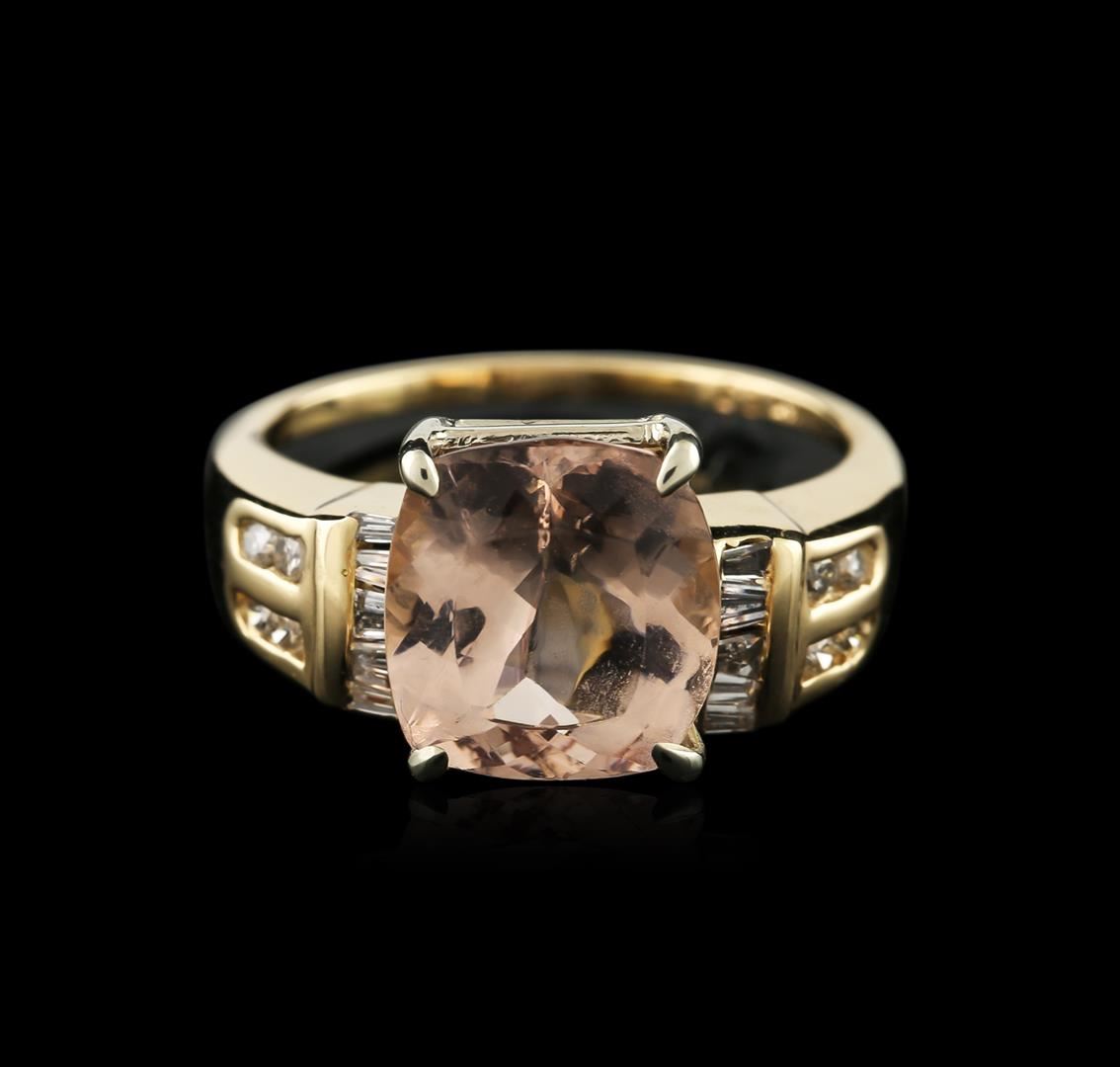 One ring featuring: 14KT yellow gold weighing 3.96 grams containing one morganite center stone with a total weight of 3.41ct and diamonds with a total weight of 0.25ct.