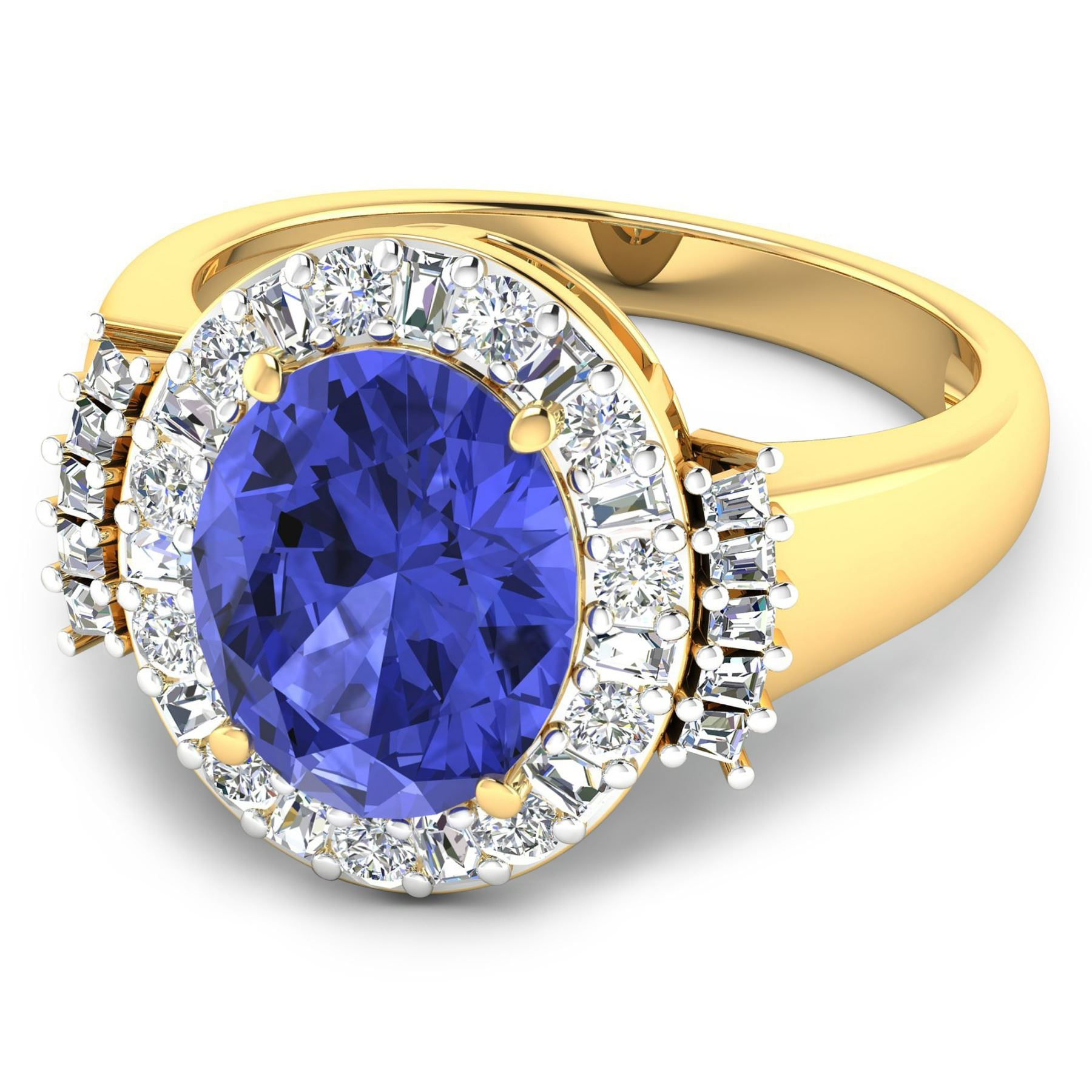 Tanzanite (AA+) Oval 11x9mm - 1Pc + White Diamond Tapper Baguette 2.00x1.50x1.10mm - 11Pcs + White Diamond Tapper Baguette 1.50x1.40x1.00mm - 10Pcs + White Diamond F/C Round 2.00mm - 11Pcs ( White Pan Rhodium ) ( Diamond Quality : SI-2/HI ). Total weight of gemstone is 3.43cts. Total weight of Diamonds is 0.83cts. Total weight of this ring is 4.62 grams. Ring size 7.