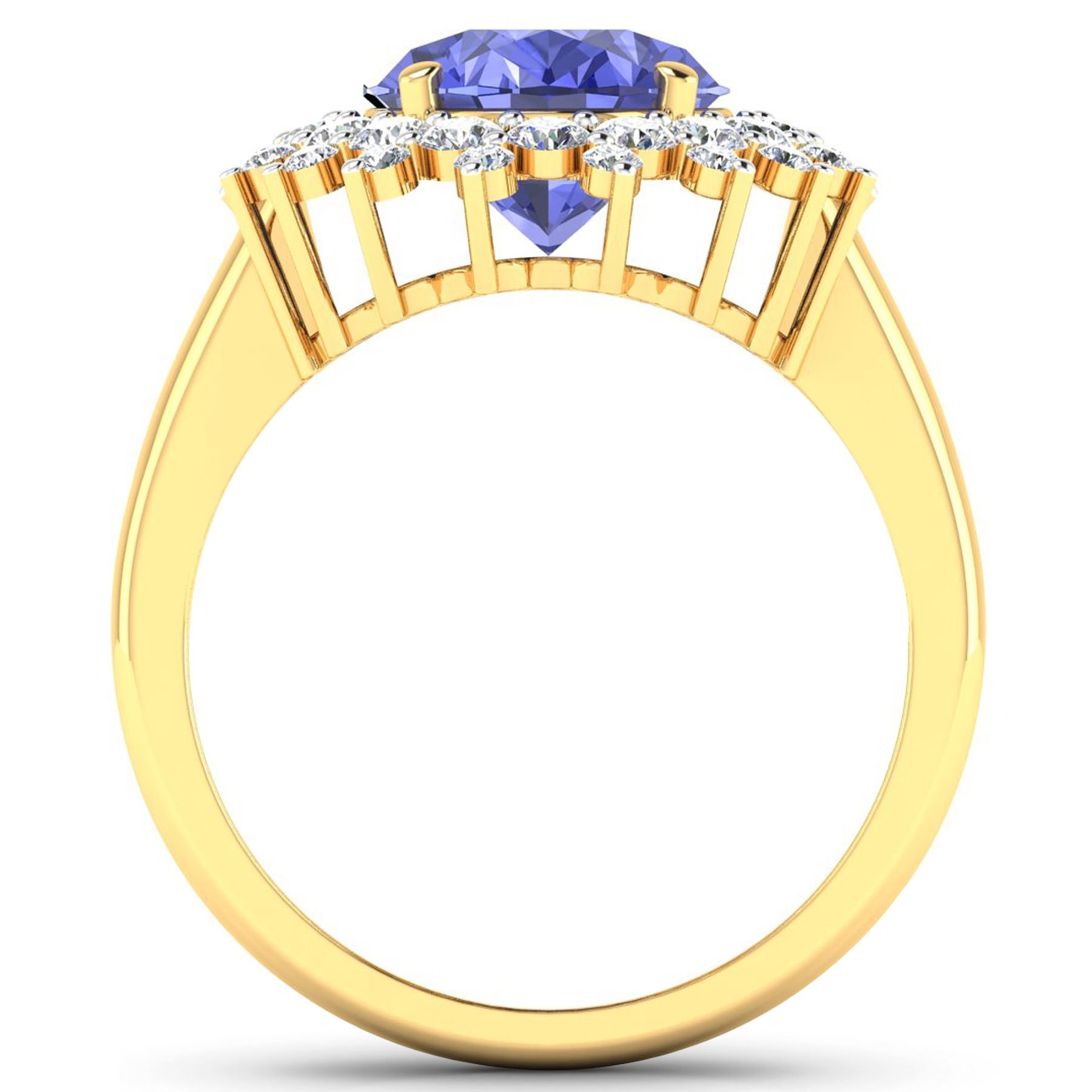 1 Tanzanite stone with a total weight of 3.43cts. Tanzanite (AA+) Oval 11x9mm - 1Pc + White Diamond F/C Round 2.00mm - 18Pcs + White Diamond F/C Round 1.50mm - 18Pcs ( Diamond Quality : SI-2/HI ). Total weight of Diamonds is 0.79cts. Total weight of ring is 4.43 grams. Ring size 7.