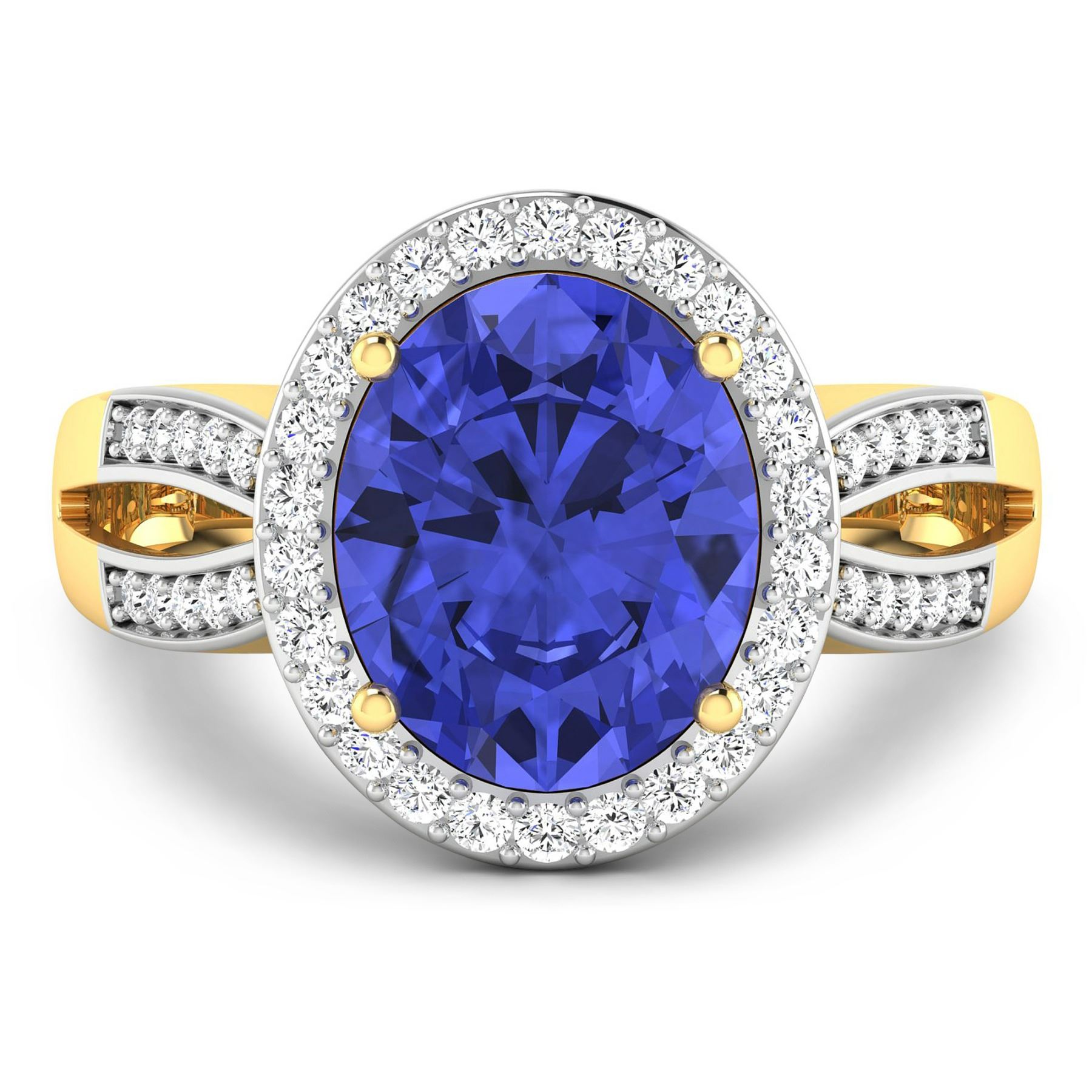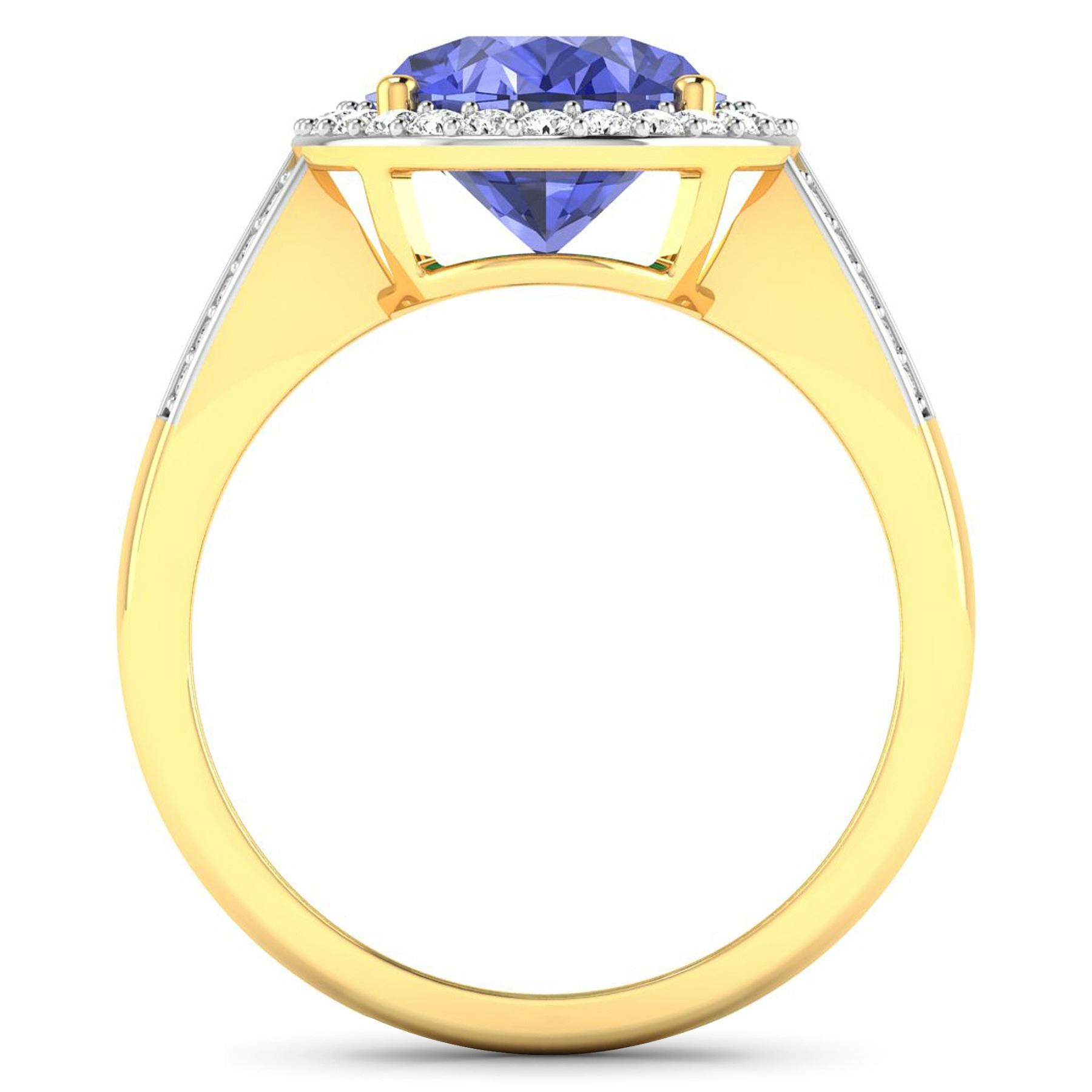 Tanzanite (AA+) Oval 11x9mm - 1Pc + White Diamond F/C Round 1.30mm - 26Pcs + White Diamond F/C Round 1.10mm - 20Pcs ( White Pan Rhodium ) ( SI-2/HI ) Total weight of gemstone is 3.43cts. Total Diamond weight is 0.39cts. Total weight of this ring is 4.36 grams. Ring size 7.