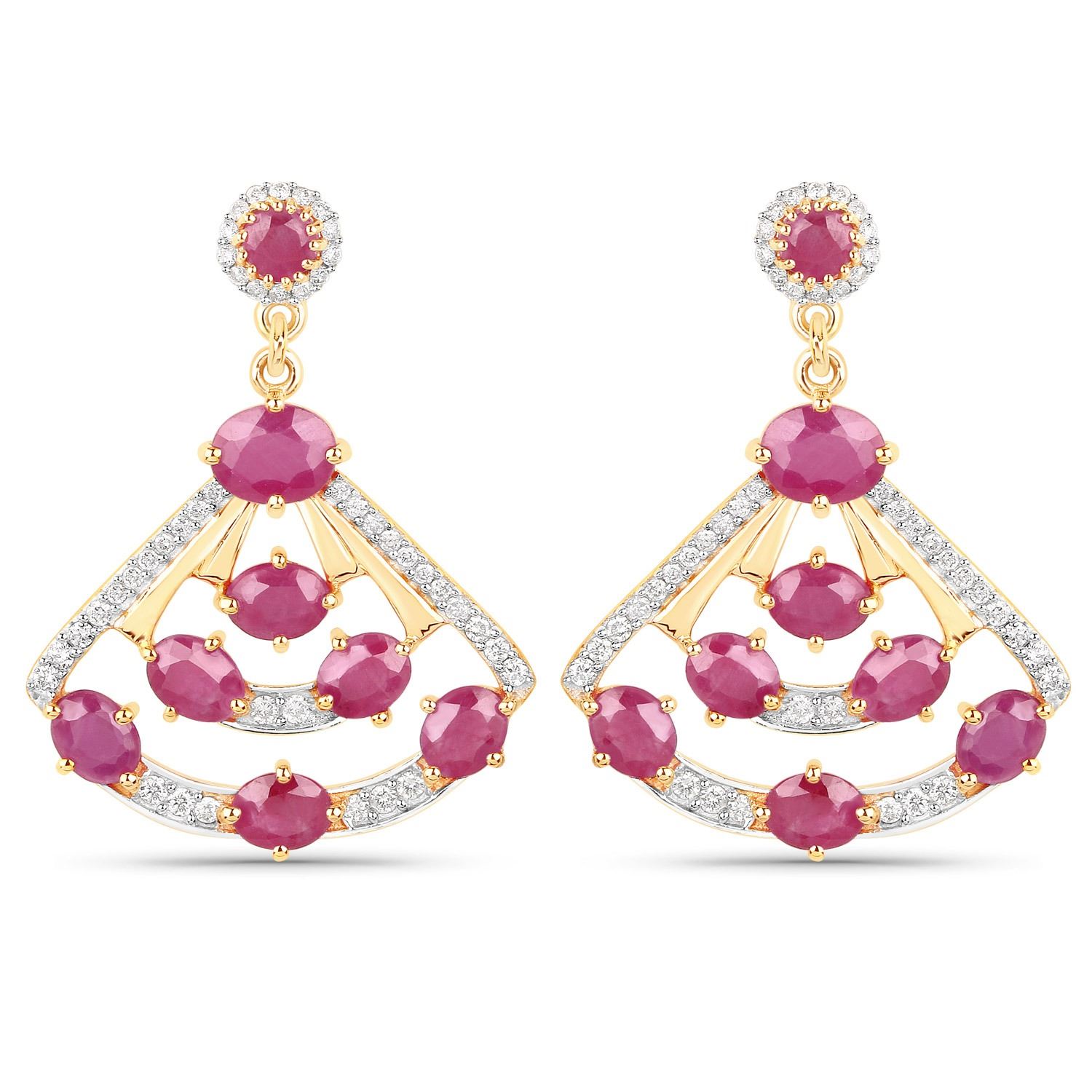 Ruby Oval 5x4mm - 2Pcs + Ruby Oval 4x3mm - 12Pcs + Ruby Round 3.00mm - 2Pcs with a total weight of 3.50cts. Diamond White Round 0.80-1.10mm - 88Pcs ( I1/H-I ) with a total weight of 0.34cts. Total weight of these earrings are 4.13 grams.
