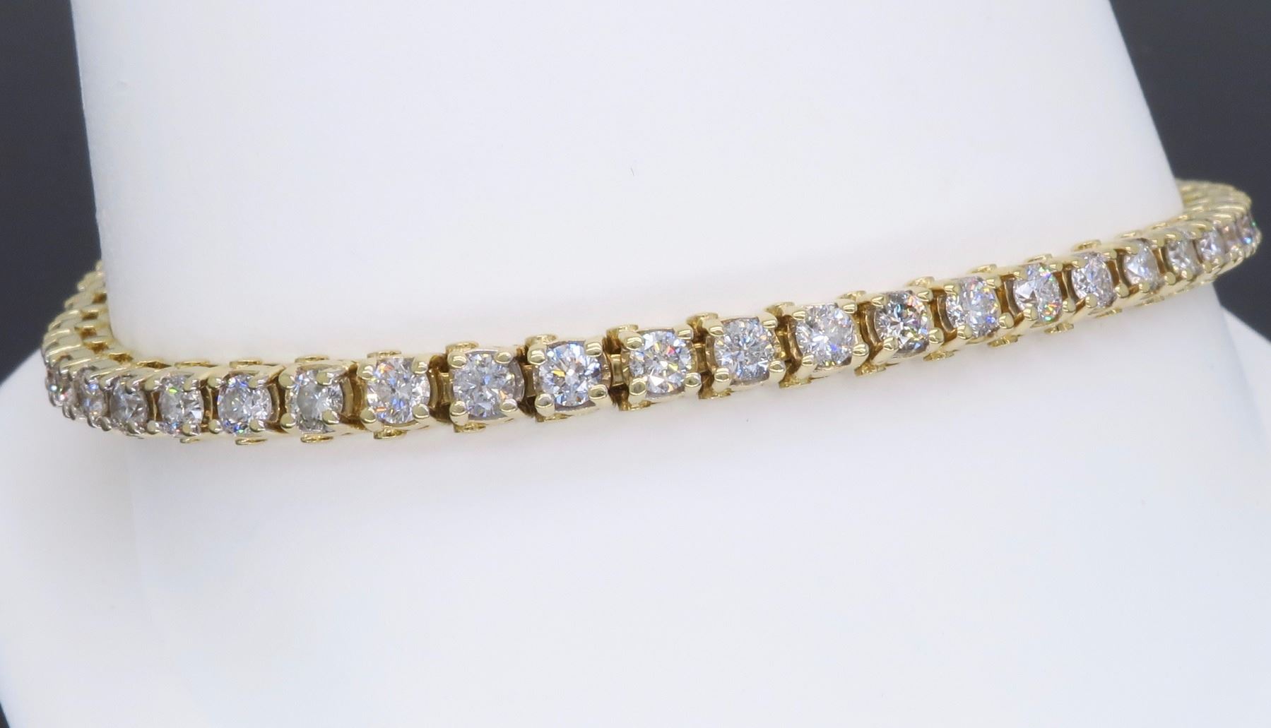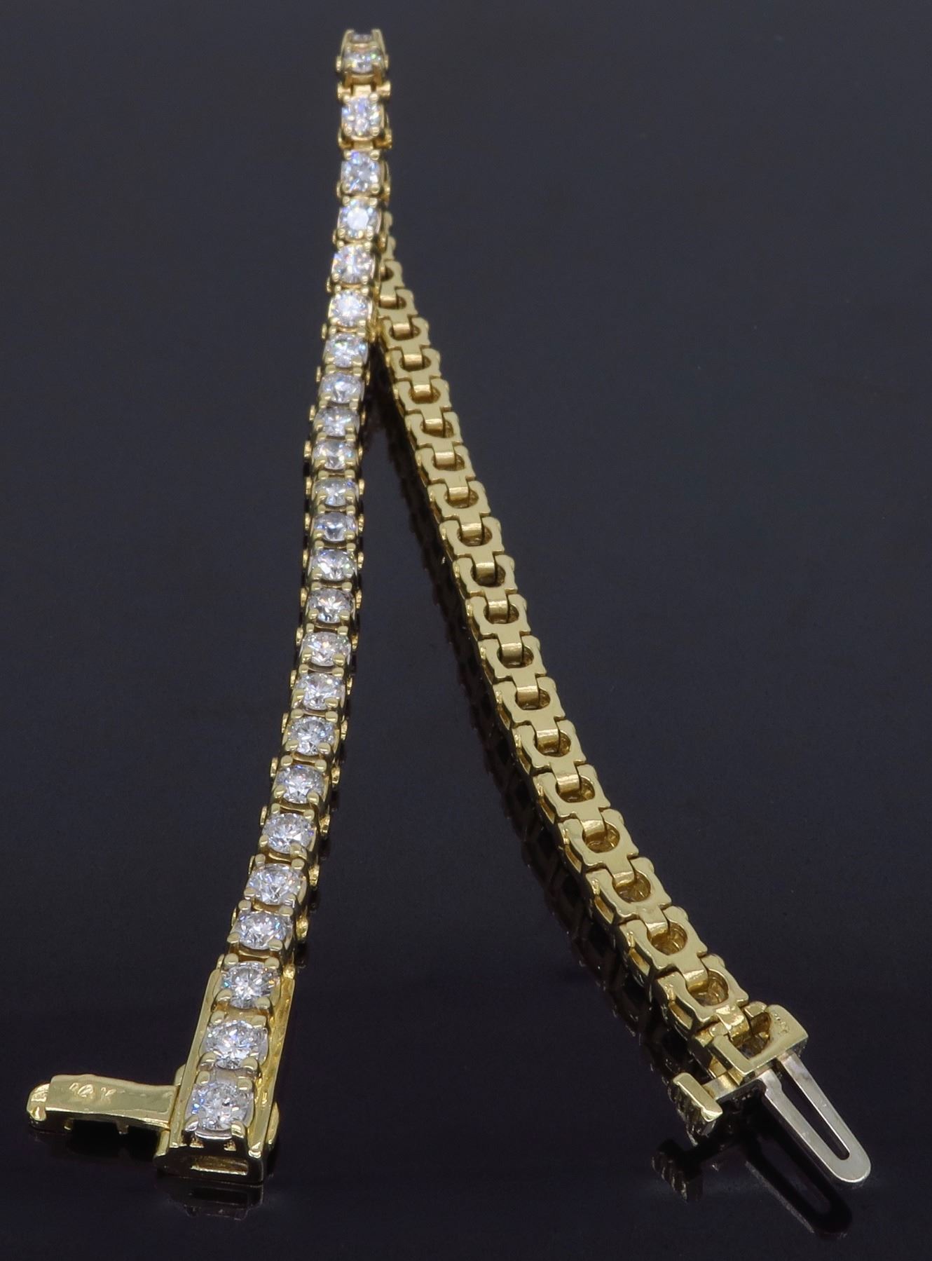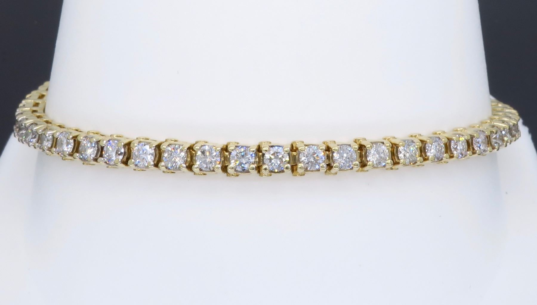 One 14KT Yellow Gold 3.50ctw Diamond Tennis Bracelet. Round Diamonds with a total weight of 3.50ctw with a color of H-K and clarity of SI-2 to I-2. Length of this bracelet is 7 inches. Total weight of this bracelet is 14.2 grams.