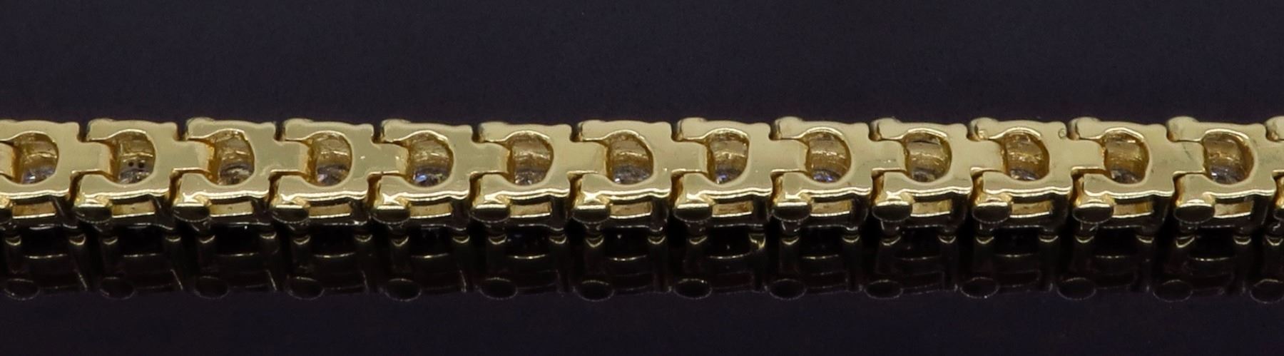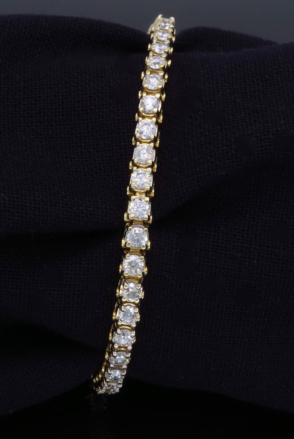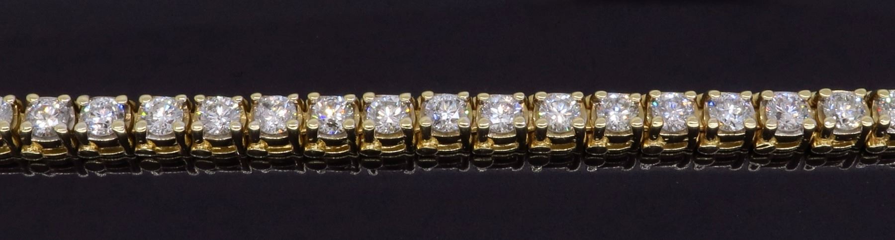 One 14KT Yellow Gold 3.50ctw Diamond Tennis Bracelet. Round Diamonds with a total weight of 3.50ctw with a color of H-K and clarity of SI-2 to I-2. Length of this bracelet is 7 inches. Total weight of this bracelet is 14.2 grams.