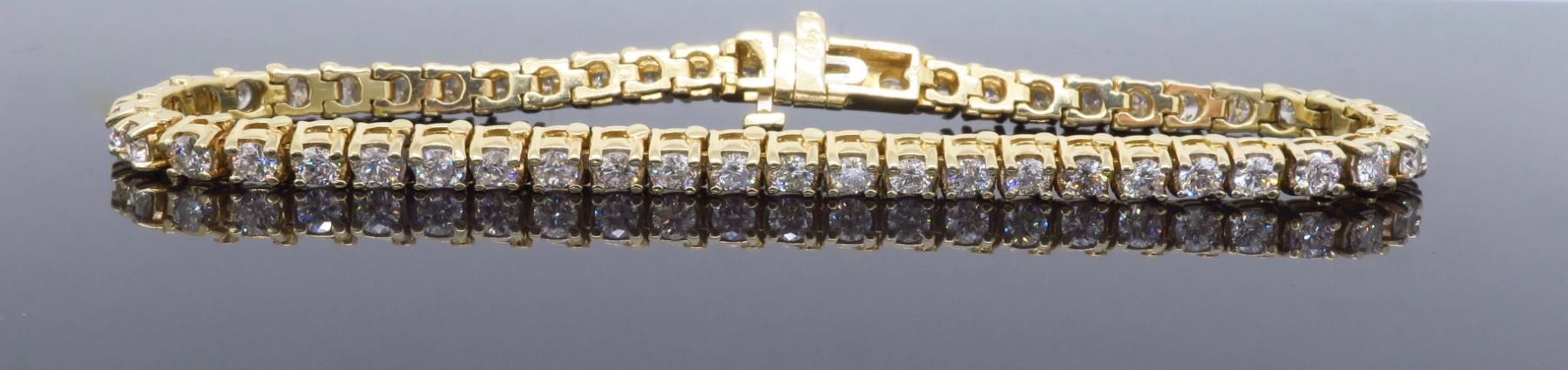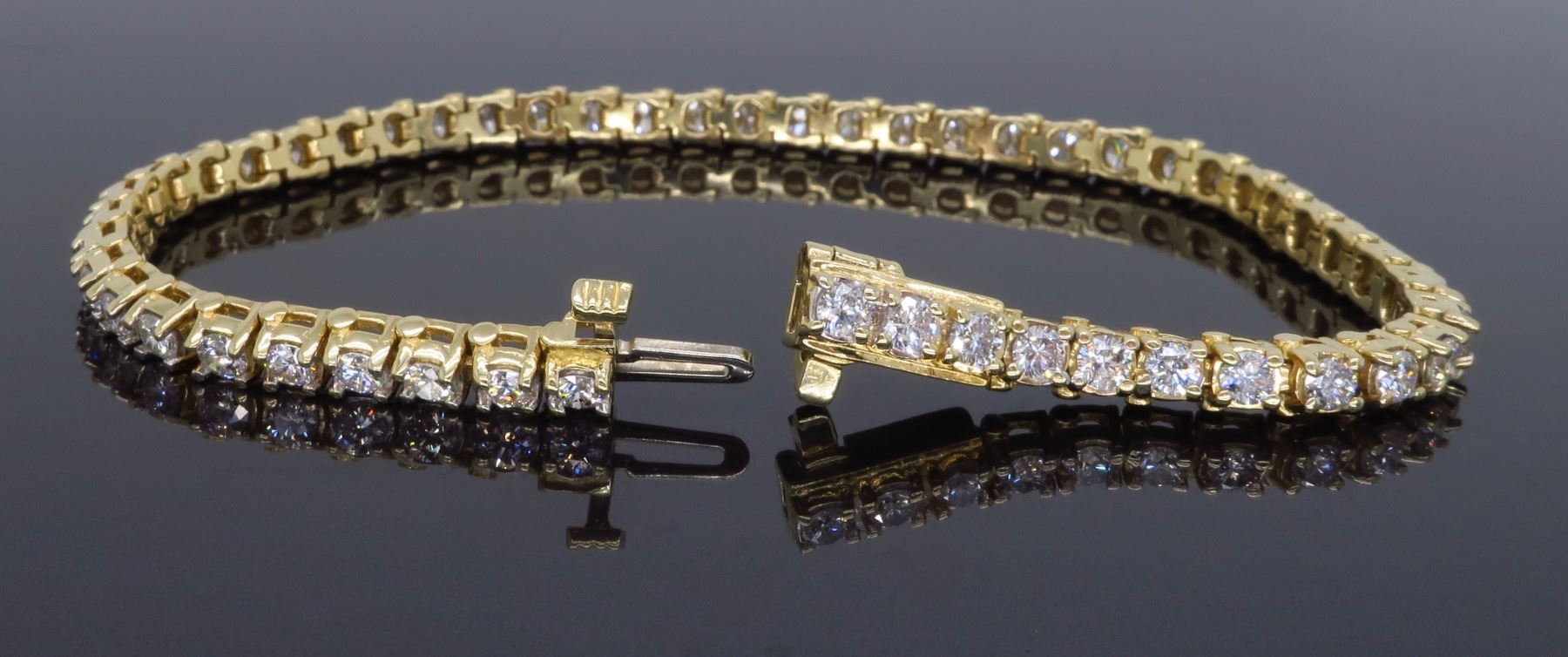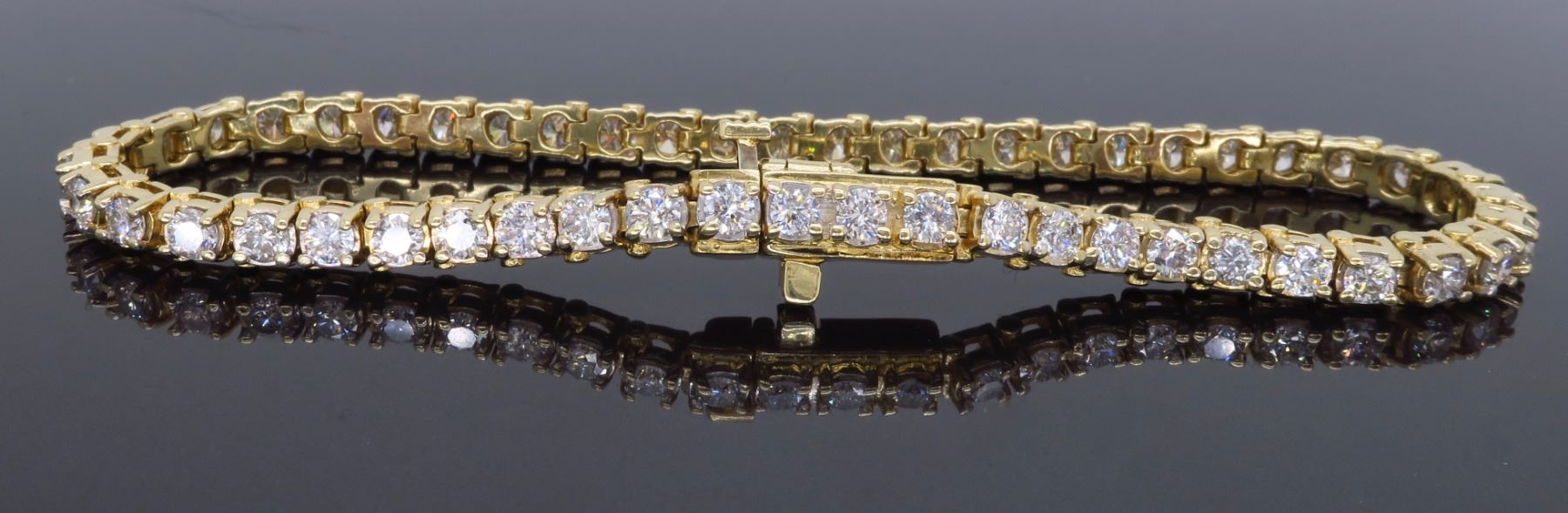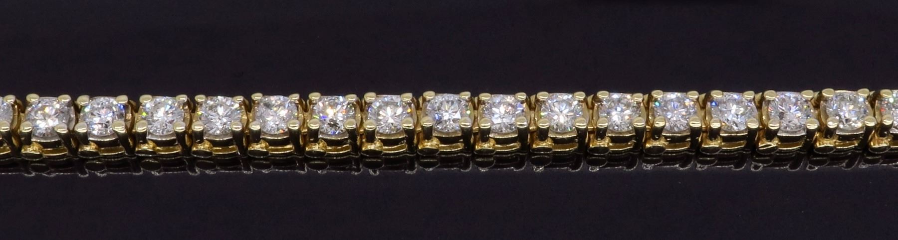 One 14KT Yellow Gold 3.50ctw Diamond Tennis Bracelet. Round Diamonds with a total weight of 3.50ctw with a color of H-K and clarity of SI-2 to I-2. Length of this bracelet is 7 inches. Total weight of this bracelet is 14.2 grams.