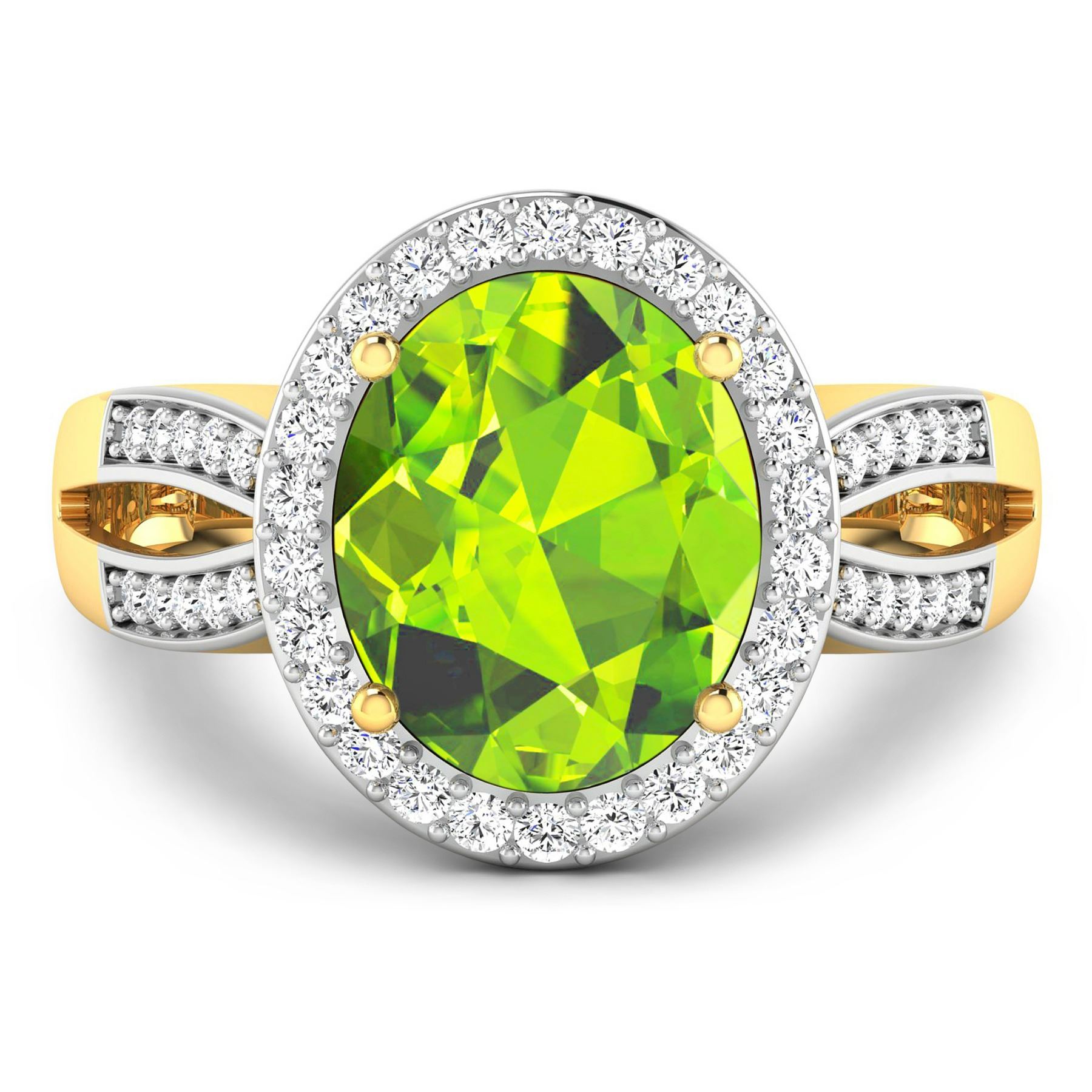 Peridot Oval 11x9mm - 1Pc + White Diamond F/C Round 1.30mm - 26Pcs + White Diamond F/C Round 1.10mm - 20Pcs ( White Pan Rhodium ) ( SI-2/HI ) Total weight of gemstone is 3.85cts. Total Diamond weight is 0.39cts. Total weight of this ring is 4.45 grams. Ring size 7.