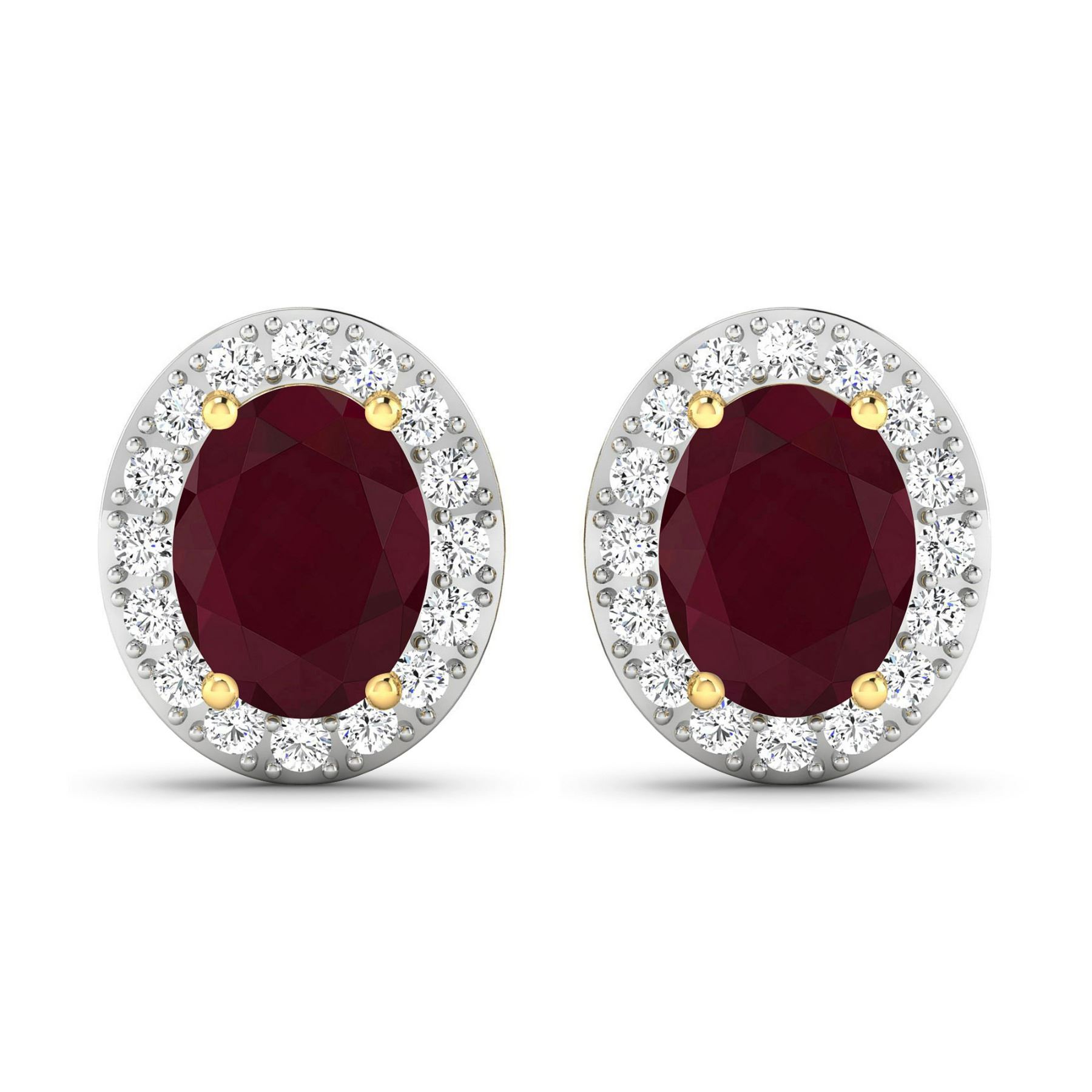 Ruby (AA) Oval 8x6mm - 2Pcs + White Diamond F/C Round 1.50mm - 32Pcs ( White Pan Rhodium ) ( Diamond Quality : SI-2/HI ) ( Push Post ) Total weight of gemstones is 3cts. Total Diamond weight is 0.44cts. Total weight of these earrings are 2.82 grams.