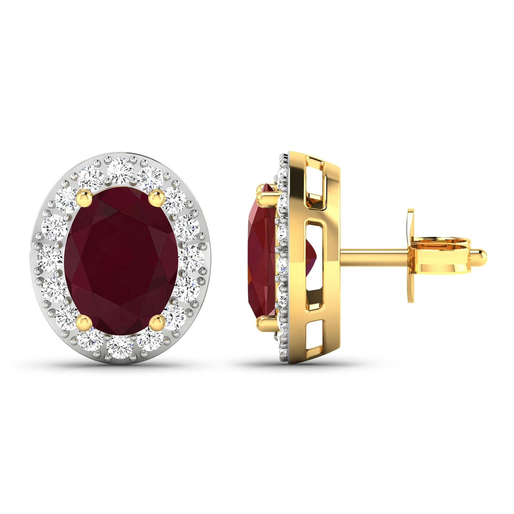 Ruby (AA) Oval 8x6mm - 2Pcs + White Diamond F/C Round 1.50mm - 32Pcs ( White Pan Rhodium ) ( Diamond Quality : SI-2/HI ) ( Push Post ) Total weight of gemstones is 3cts. Total Diamond weight is 0.44cts. Total weight of these earrings are 2.82 grams.