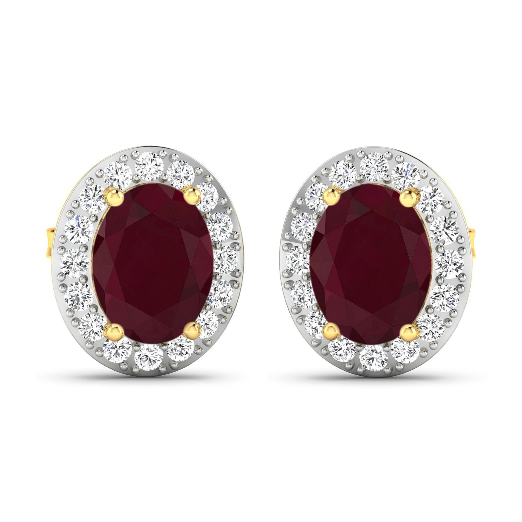 Ruby (AA) Oval 8x6mm - 2Pcs + White Diamond F/C Round 1.50mm - 32Pcs ( White Pan Rhodium ) ( Diamond Quality : SI-2/HI ) ( Push Post ) Total weight of gemstones is 3cts. Total Diamond weight is 0.44cts. Total weight of these earrings are 2.82 grams.