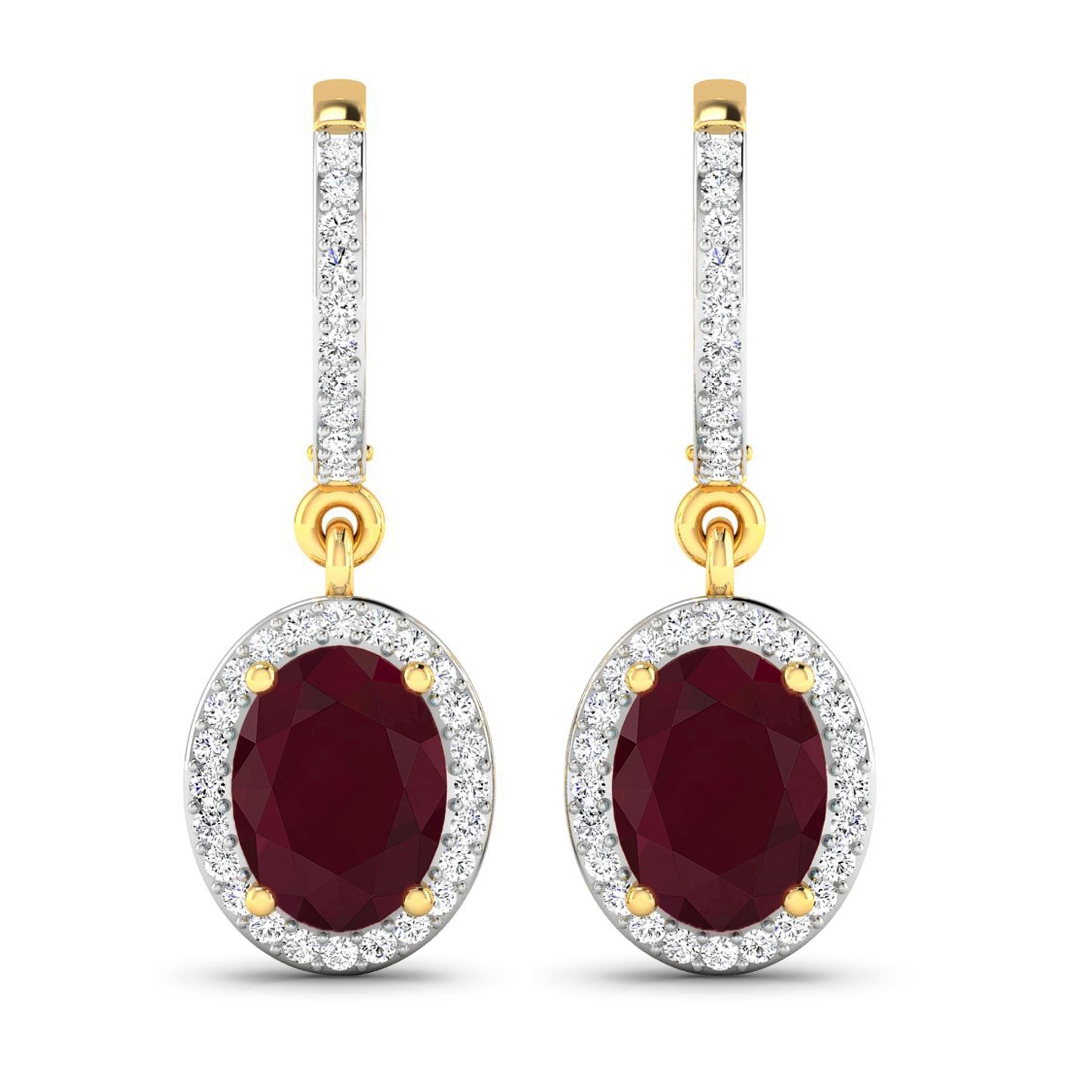 Ruby (AA) Oval 8x6mm - 2Pcs + White Diamond F/C Round 1.00mm - 70Pcs ( Clip On ) ( White Pan Rhodium ) ( I1-I2/I color ) Total weight of gemstones is 3cts. Total Diamond weight is 0.32cts. Total weight of these earrings are 3.44 grams.