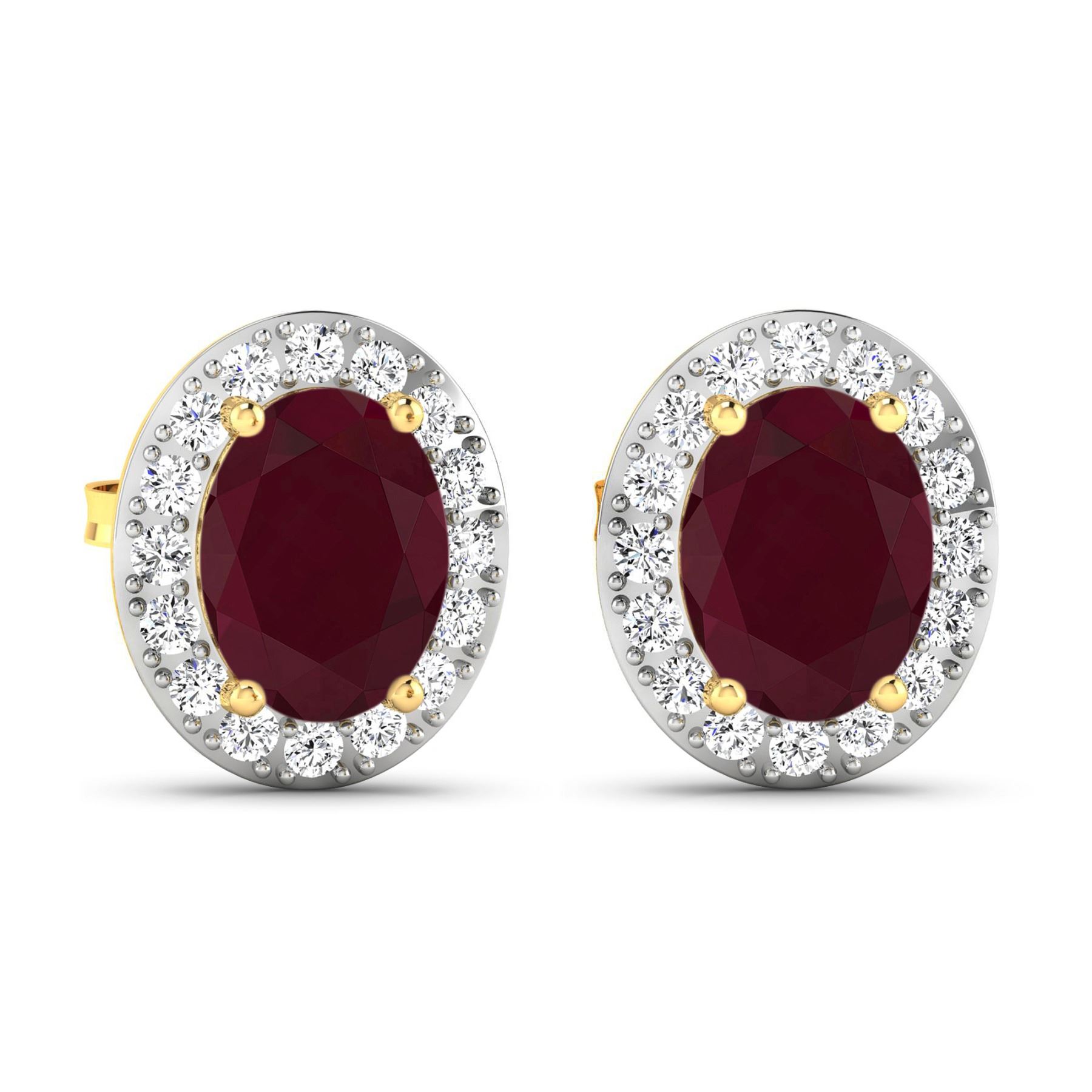 Ruby (AA) Oval 8x6mm - 2Pcs + White Diamond F/C Round 1.50mm - 32Pcs ( White Pan Rhodium ) ( Diamond Quality : SI-2/HI ) ( Push Post ) Total weight of gemstones is 3cts. Total Diamond weight is 0.44cts. Total weight of these earrings are 2.82 grams.