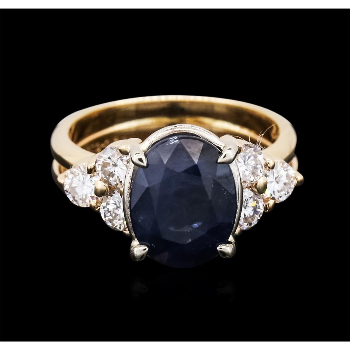 One ring featuring: 14KT yellow gold weighing 6.00 grams containing one sapphire center stone with a total weight of 4.06ct and round diamonds with a total weight of 0.65ct.