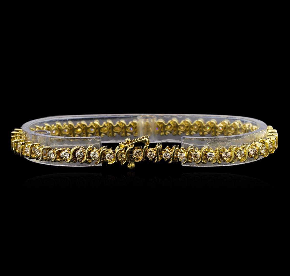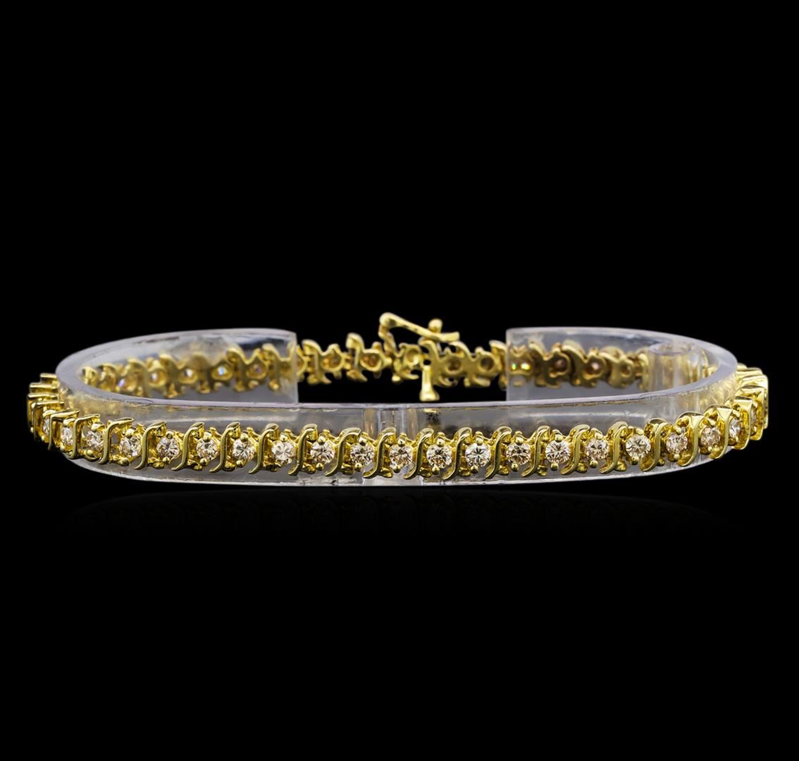 One electronically tested 14KT yellow gold ladies cast diamond tennis bracelet with a hidden box clasp with safety closer with a bright polish finish. Measurements: 8 inches length Identified with markings of "14K". Condition is very good. Containing: Forty-Seven prong set round brilliant cut diamonds, measuring 2.90 - 2.90 x 1.74mm (depth est.) approximate total weight of 47 Stones = 4.19ct. Clarity: SI-2 to I-1. Color: J - K. All diamonds are graded in the mounting, unless otherwise stated. Total Weight of Diamonds 4.19ct. Total Weight of Tennis Bracelet 13.80 grams. GGL Appraised at $6,050.00.
