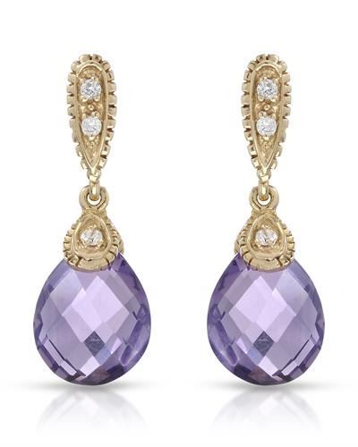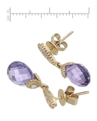 14KT Yellow Gold 4.48ctw Amethyst and Diamond Earrings. (2) Amethyst stones with a total weight of 4.48cts. (8) Round Diamonds with a total weight of 0.10cts with a color of I and clarity of I-1. Total weight of these earrings are 2.49 grams.