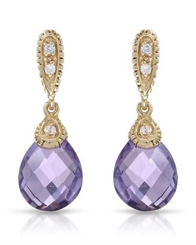 14KT Yellow Gold 4.48ctw Amethyst and Diamond Earrings. (2) Amethyst stones with a total weight of 4.48cts. (8) Round Diamonds with a total weight of 0.10cts with a color of I and clarity of I-1. Total weight of these earrings are 2.49 grams.