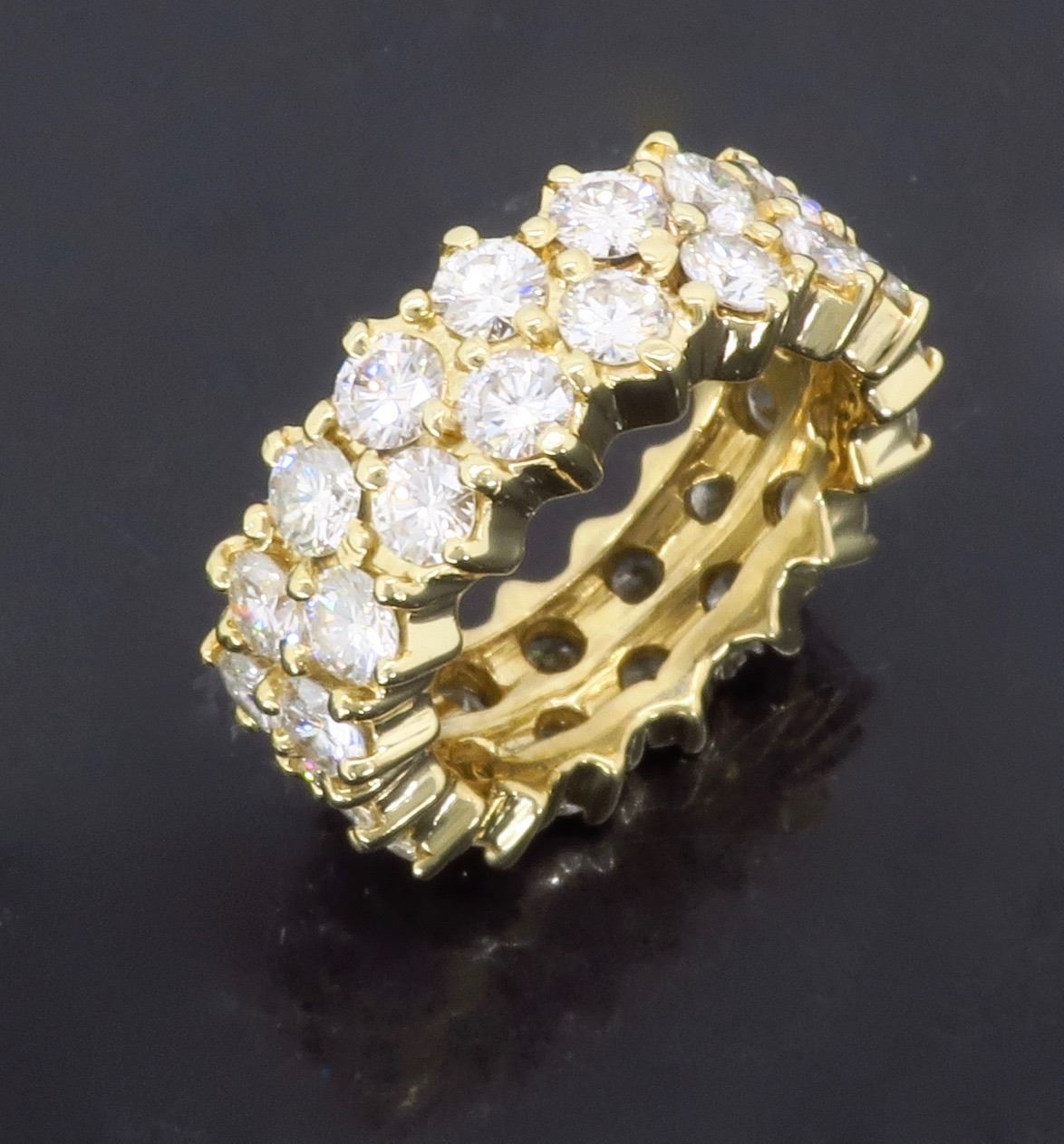 14KT Yellow Gold 4.50ctw Diamond Ring. Round Diamonds with a total weight of 4.50cts with a color of F-H and clarity of SI-1 to SI-2. Total weight of this ring is 7.5 grams. Ring size is 5.