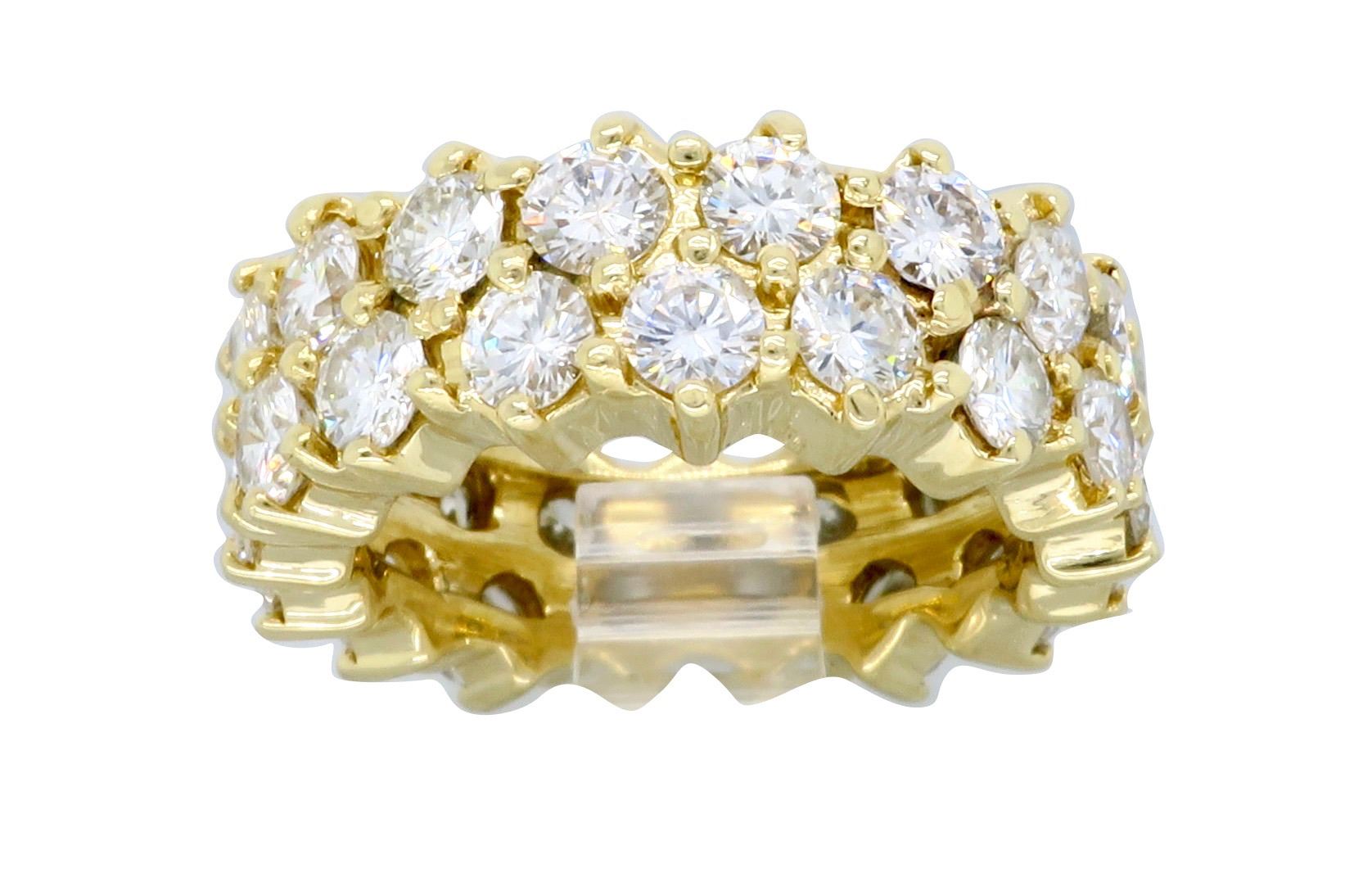 14KT Yellow Gold 4.50ctw Diamond Ring. Round Diamonds with a total weight of 4.50cts with a color of F-H and clarity of SI-1 to SI-2. Total weight of this ring is 7.5 grams. Ring size is 5.