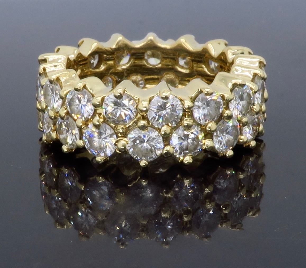 14KT Yellow Gold 4.50ctw Diamond Ring. Round Diamonds with a total weight of 4.50cts with a color of F-H and clarity of SI-1 to SI-2. Total weight of this ring is 7.5 grams. Ring size is 5.