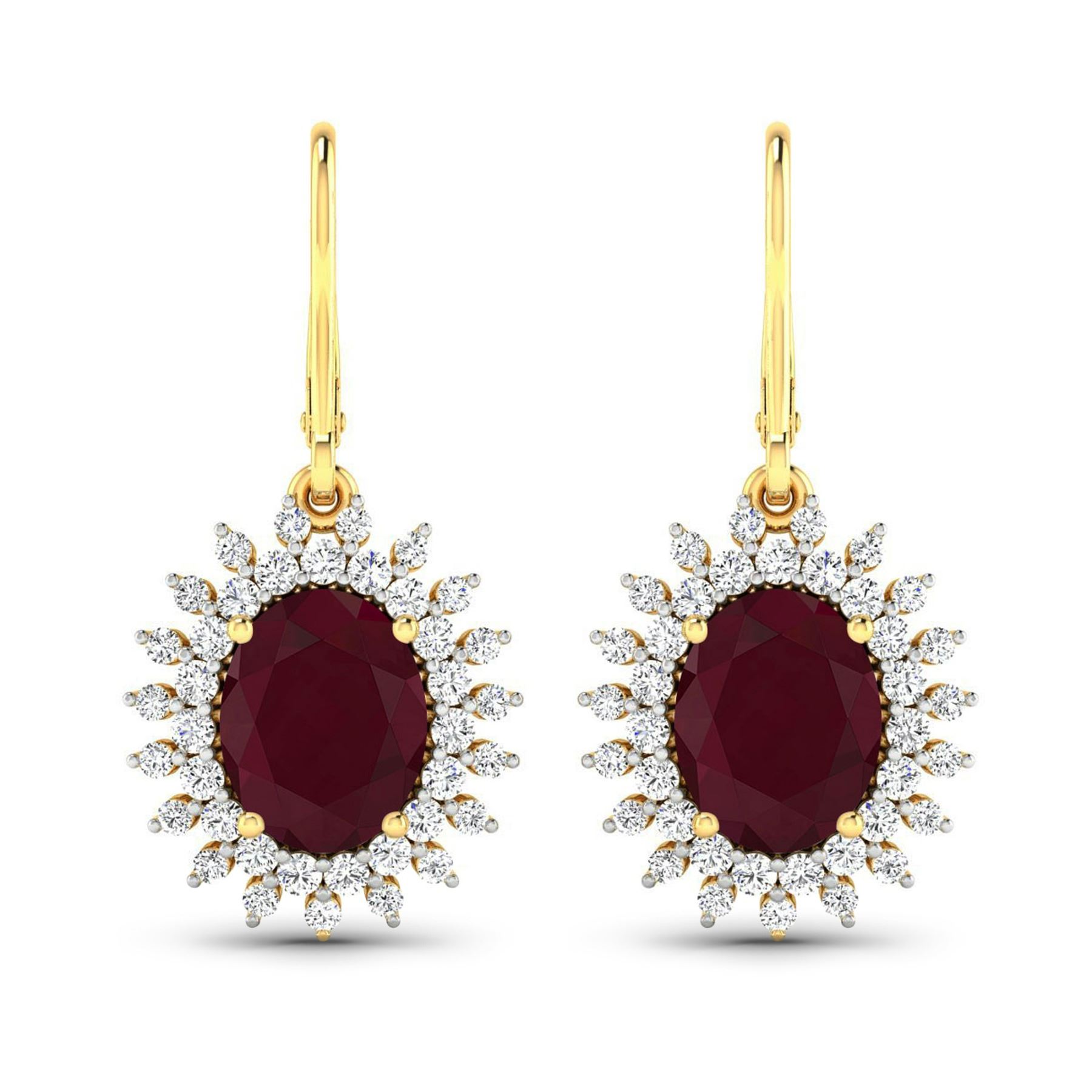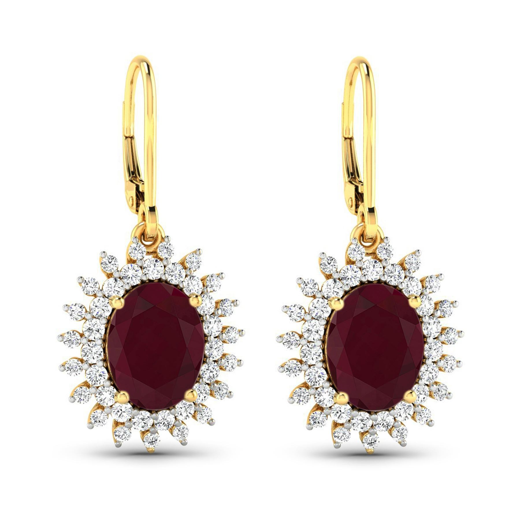 (2) Rubies with a total weight of 4.60cts. Ruby (AA) Oval 9x7mm - 2Pcs + White Diamond F/C Round 1.50mm - 38Pcs + White Diamond F/C Round 1.20mm - 38Pcs ( Diamond Quality : SI-2/HI ) ( Lever Back ). Diamonds with a total weight of 0.84cts. Total weight of these earrings are 4.51 grams.
