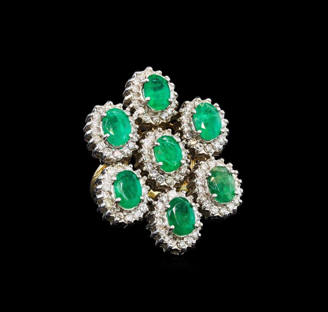 14KT Yellow Gold 4.90 ctw Emerald and Diamond Ring