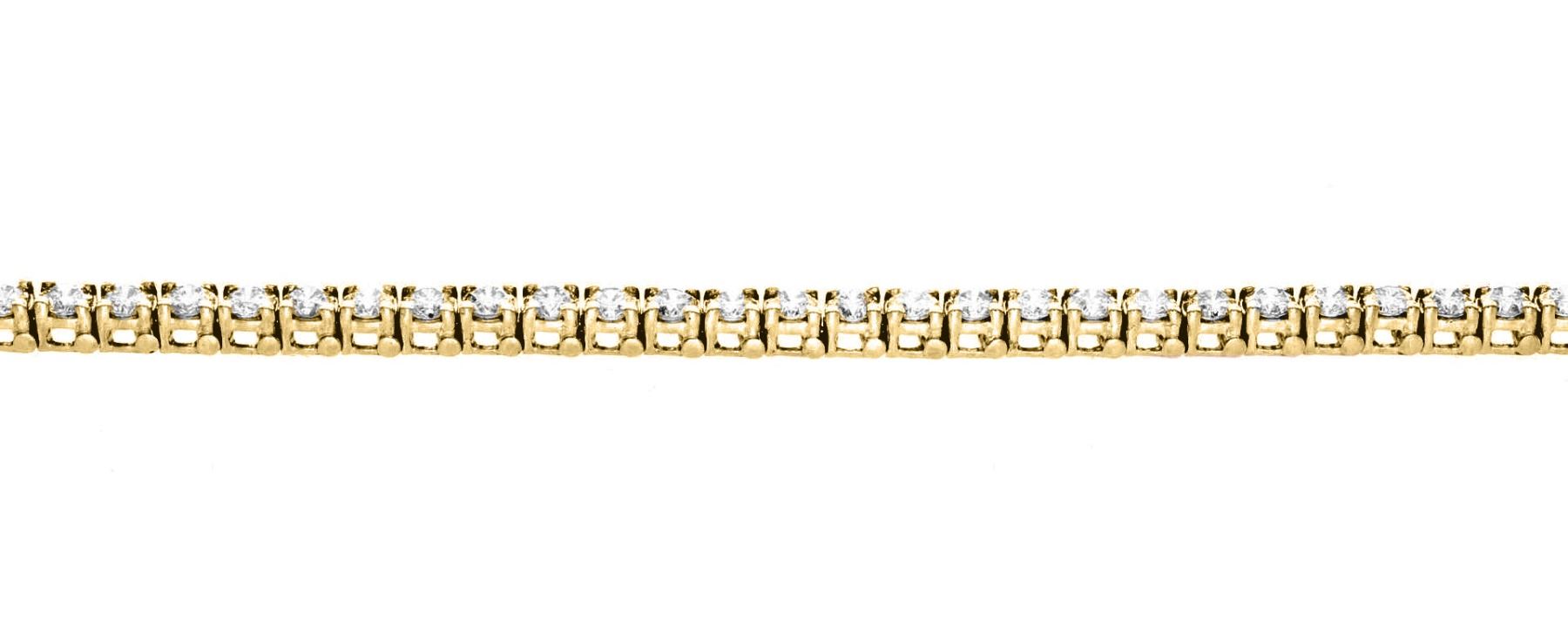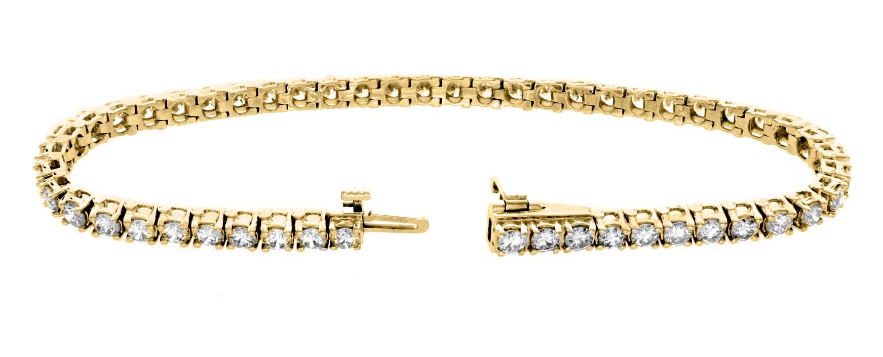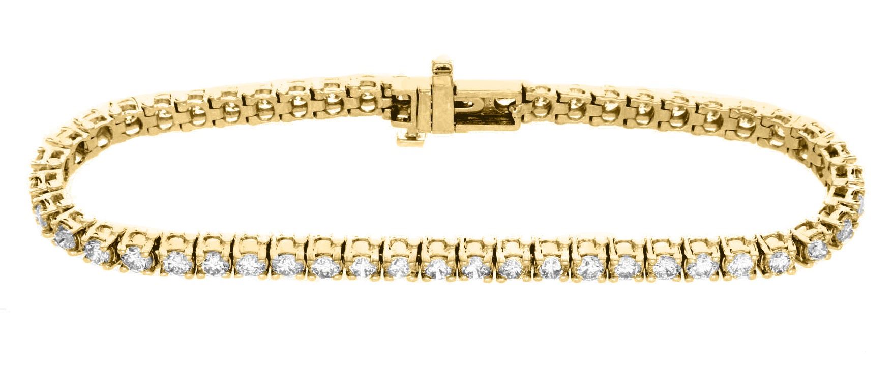 One 14KT Yellow Gold 5.00ctw Diamond Tennis Bracelet. (51) Round Diamonds with a total weight of 5.00cts with a color of I-J and clarity of VS-2 to SI-2.
