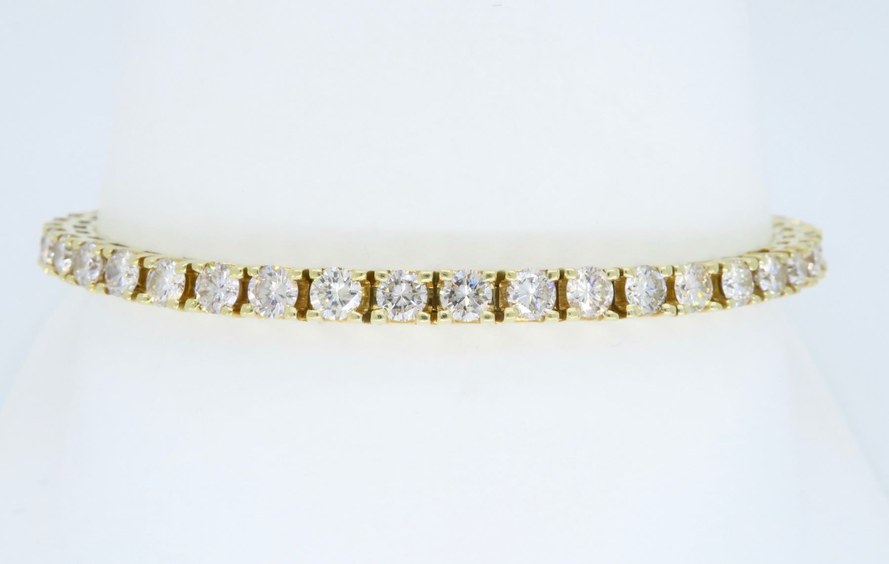 One 14KT Yellow Gold 6.00ctw Diamond Tennis Bracelet. (46) Round Diamonds with a total weight of 6.00cts with a color of I-K and clarity of VS-2 to SI-2. Total weight of this bracelet is 22 grams. Total length of this bracelet is 7 inches.