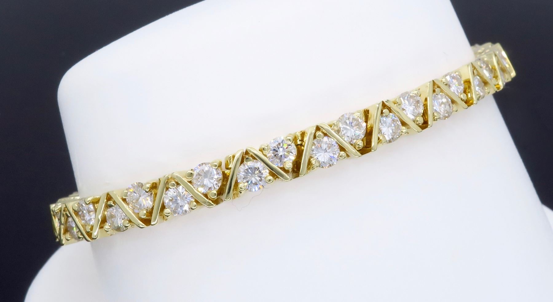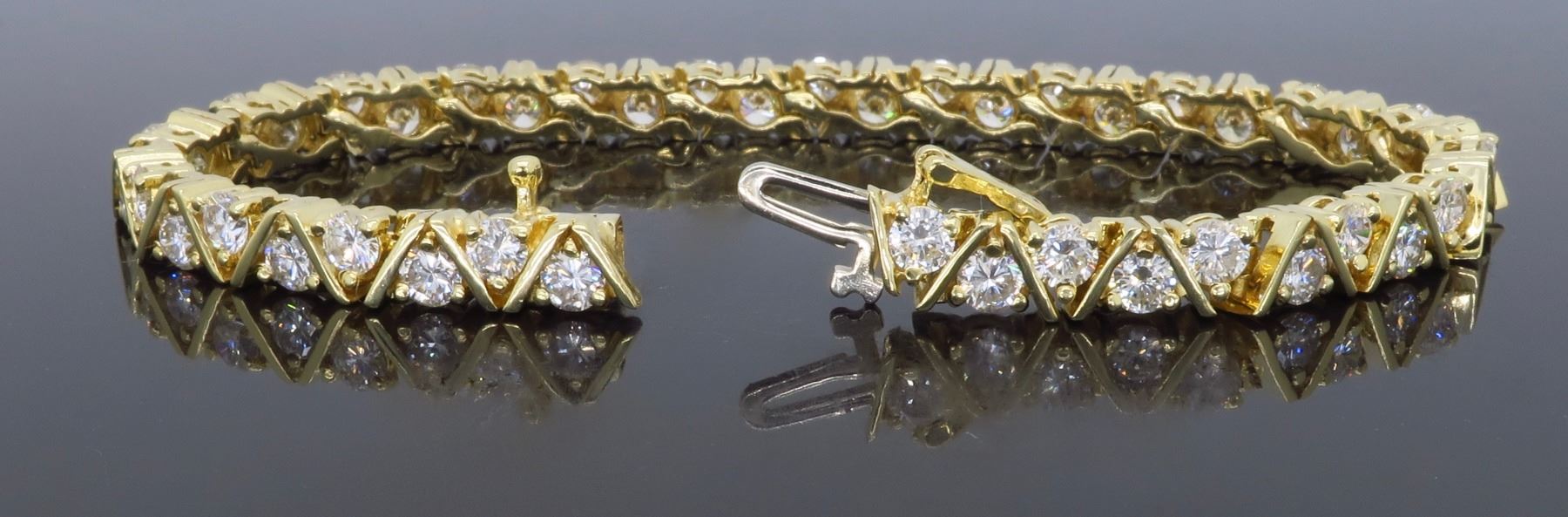 14KT Yellow Gold 6.16ctw Diamond Bracelet. Round Diamonds with a total weight of 6.16cts with a color of G-H and clarity of SI-1 to SI-2. Length of this bracelet is 6 inches. Total weight of this bracelet is 15.2 grams.