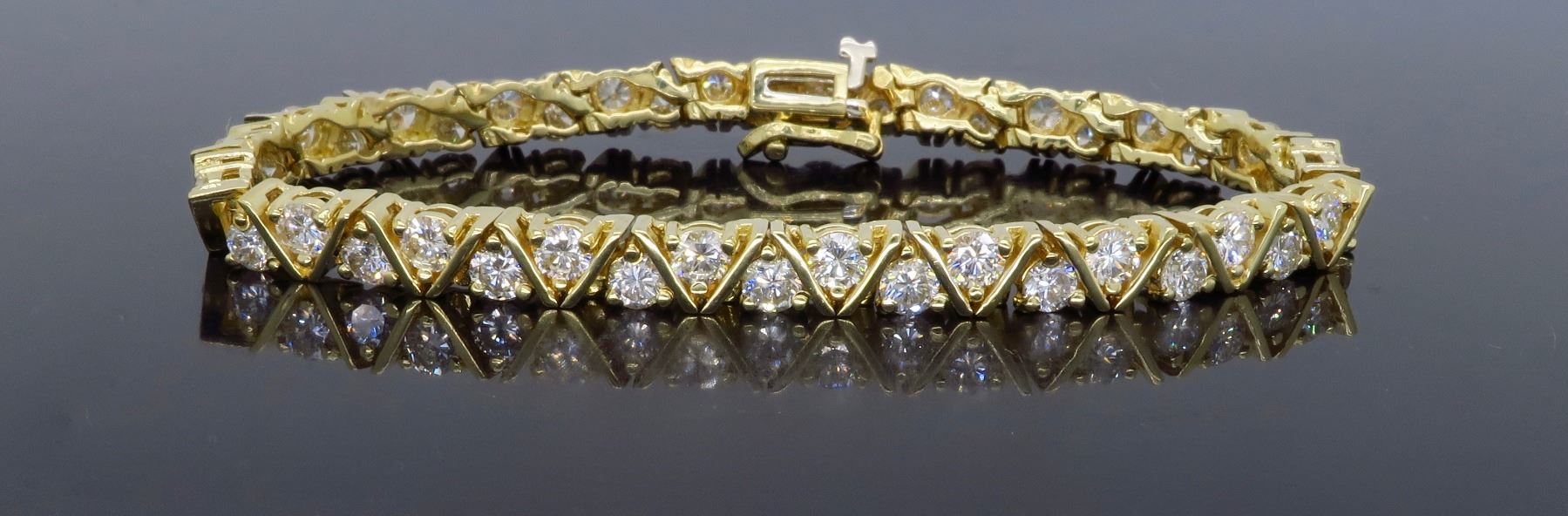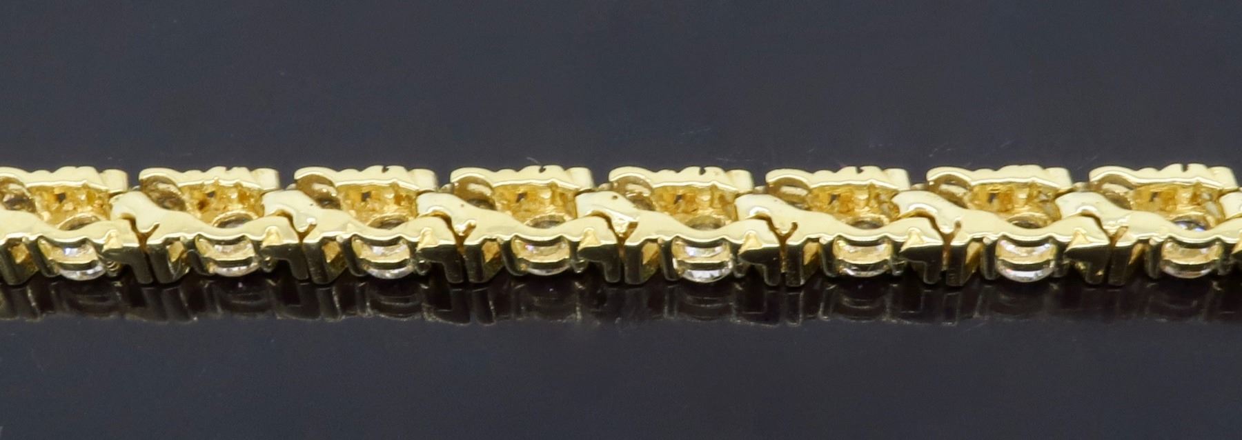 14KT Yellow Gold 6.16ctw Diamond Bracelet. Round Diamonds with a total weight of 6.16cts with a color of G-H and clarity of SI-1 to SI-2. Length of this bracelet is 6 inches. Total weight of this bracelet is 15.2 grams.