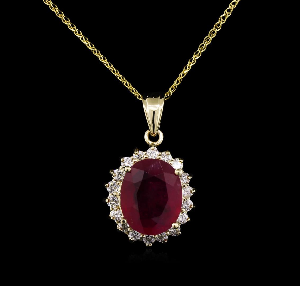 14KT Yellow Gold 7.61ct Ruby and Diamond Pendant With Chain