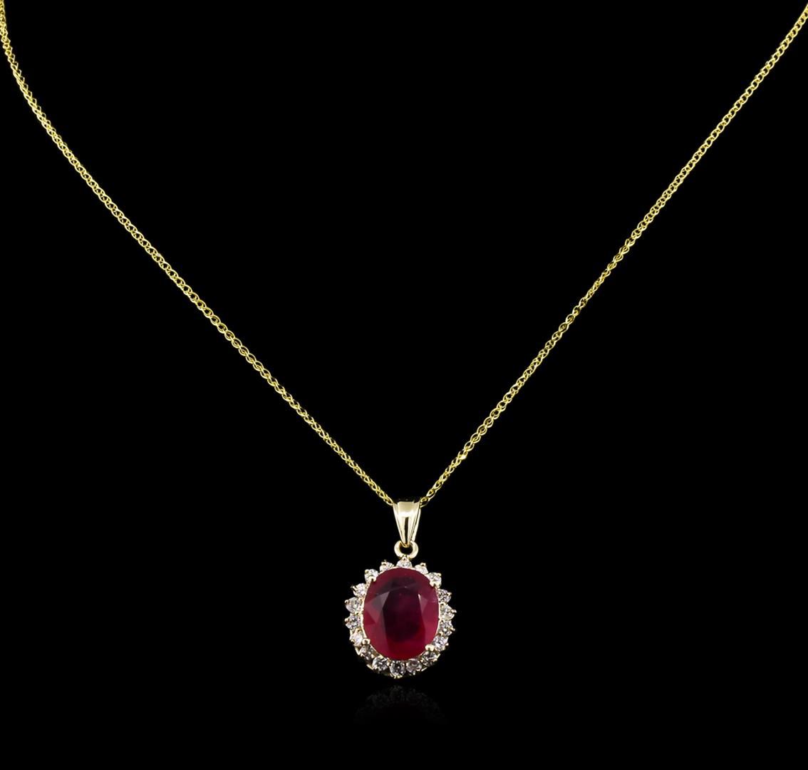 One pendant featuring: 14KT yellow gold weighing 4.20 grams containing one ruby with a total weight of 7.61ct and diamonds with a total weight of 0.85ct.