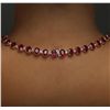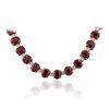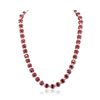 One electronically tested 14KT yellow gold ladies combination cast & assembled necklace with a hidden box clasp with a bright polish finish. Measurements: 17" in length. Identified with markings of "14K". Condition is new. Containing: Forty-four prong set oval modified brilliant cut natural rubies, measuring 8.11 x 6.11 x 4.14mm, approximate total weight of 73.48ct., clarity is heavily included, type II, medium, moderately strong, strongly purplish red color, (GIA stpR 5/4), cut is good. Forty-Four prong set round brilliant cut diamonds, measuring 2.50 - 2.50 x 1.50mm (depth est.) approximate total weight of 44 Stones = 2.51ct. Clarity: SI-2 to I-2. Color: J - K, Cut is Good. Colored gemstones are presumed to have been subjected to commonly used enhancement processes. All diamonds and colored gemstones are graded in the mounting, unless otherwise stated. Total Weight of Colored Stones 73.48ct. Total Weight of Diamonds 2.51ct. Total Weight of Necklace 47.90 grams. GGL Appraised at $23,090.00.