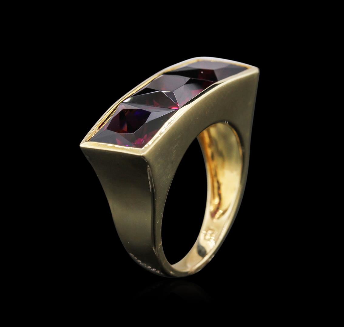 One ring featuring: 14KT yellow gold weighing 3.58 grams containing three red garnets with a total weight of 9.00ct.