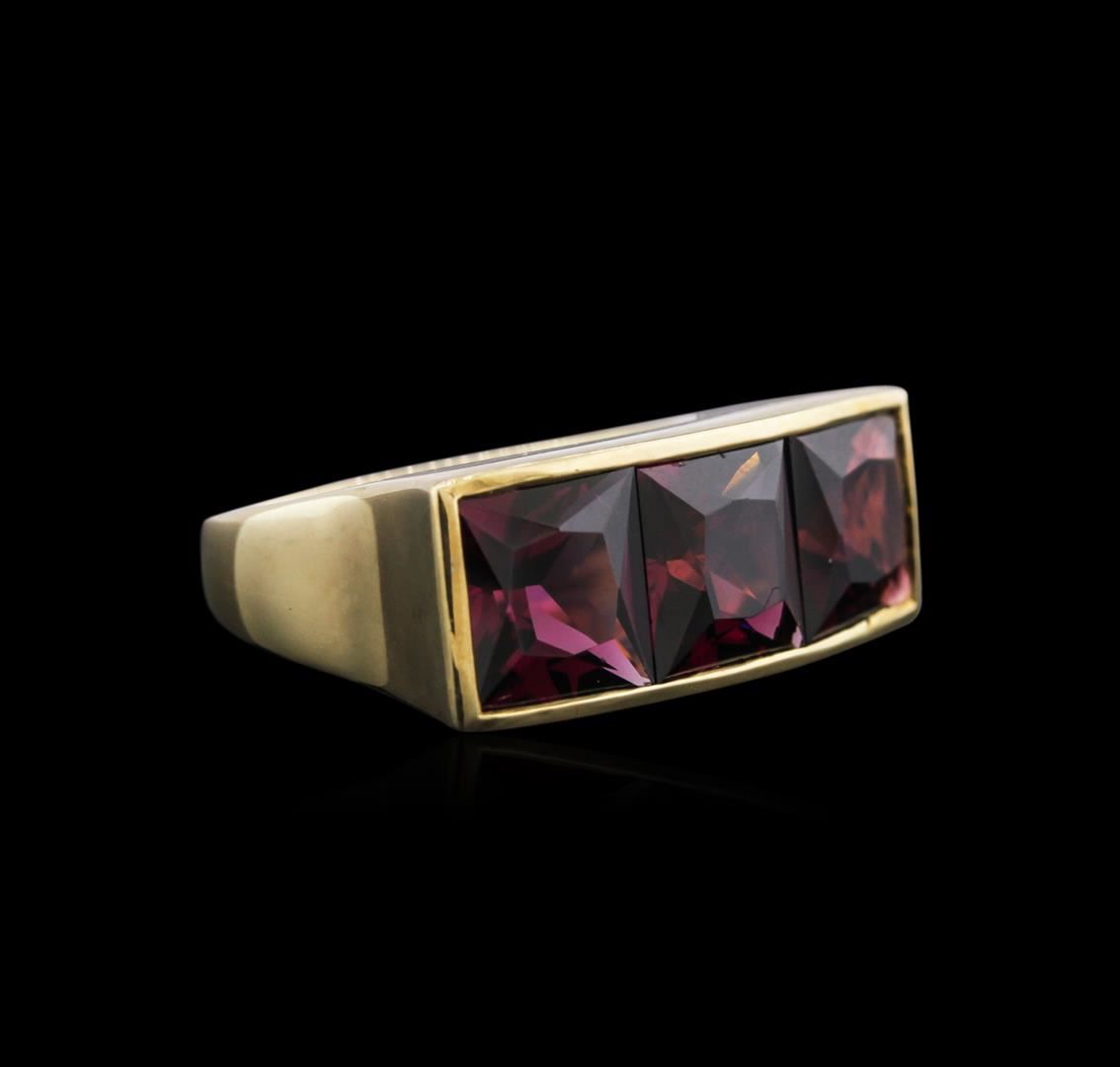 One ring featuring: 14KT yellow gold weighing 3.58 grams containing three red garnets with a total weight of 9.00ct.