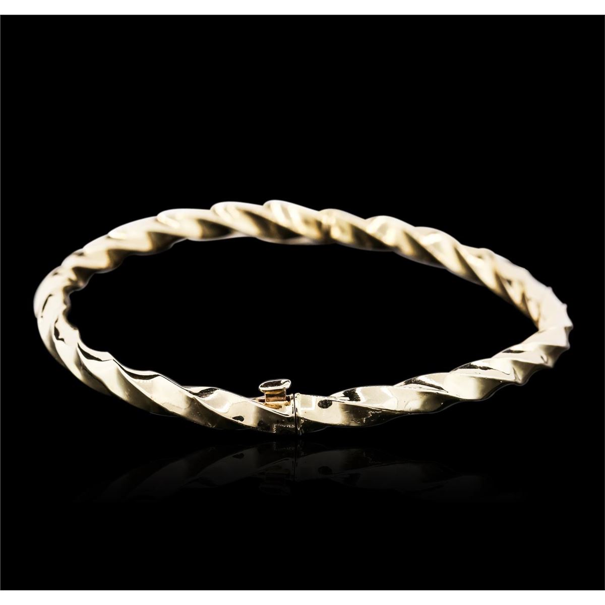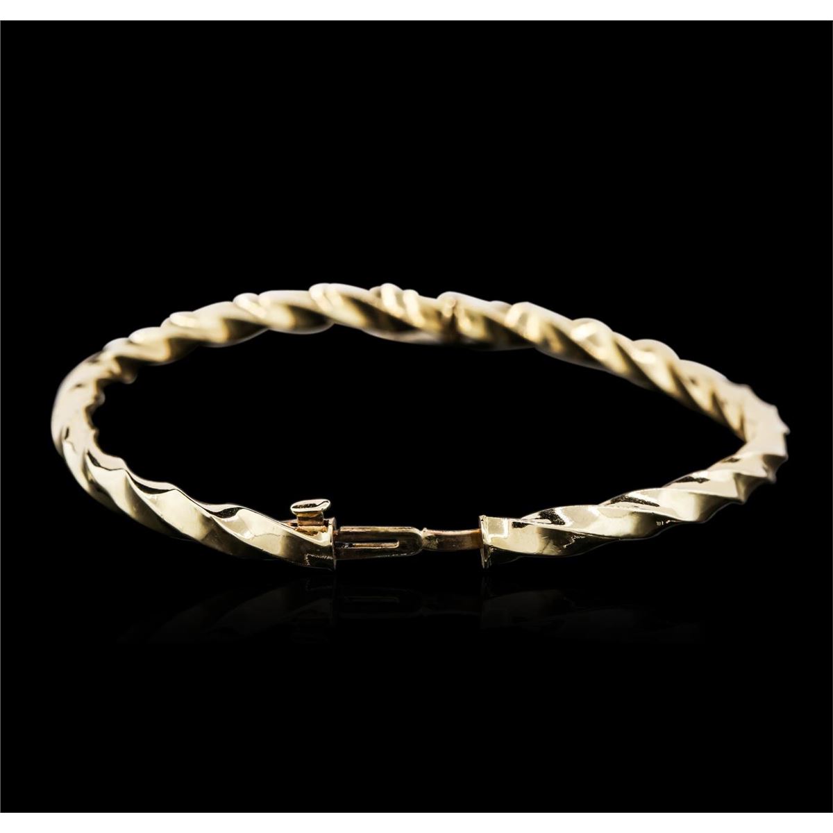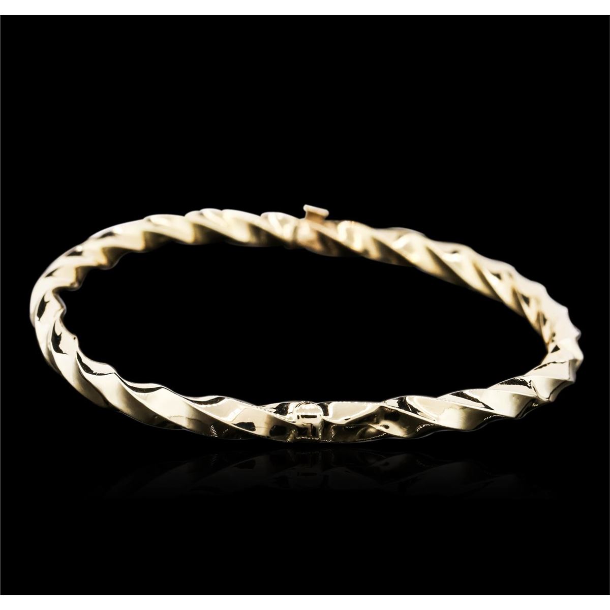 One light weight twist style bangle bracelet featuring: 14KT yellow gold weighing 4.80 grams.