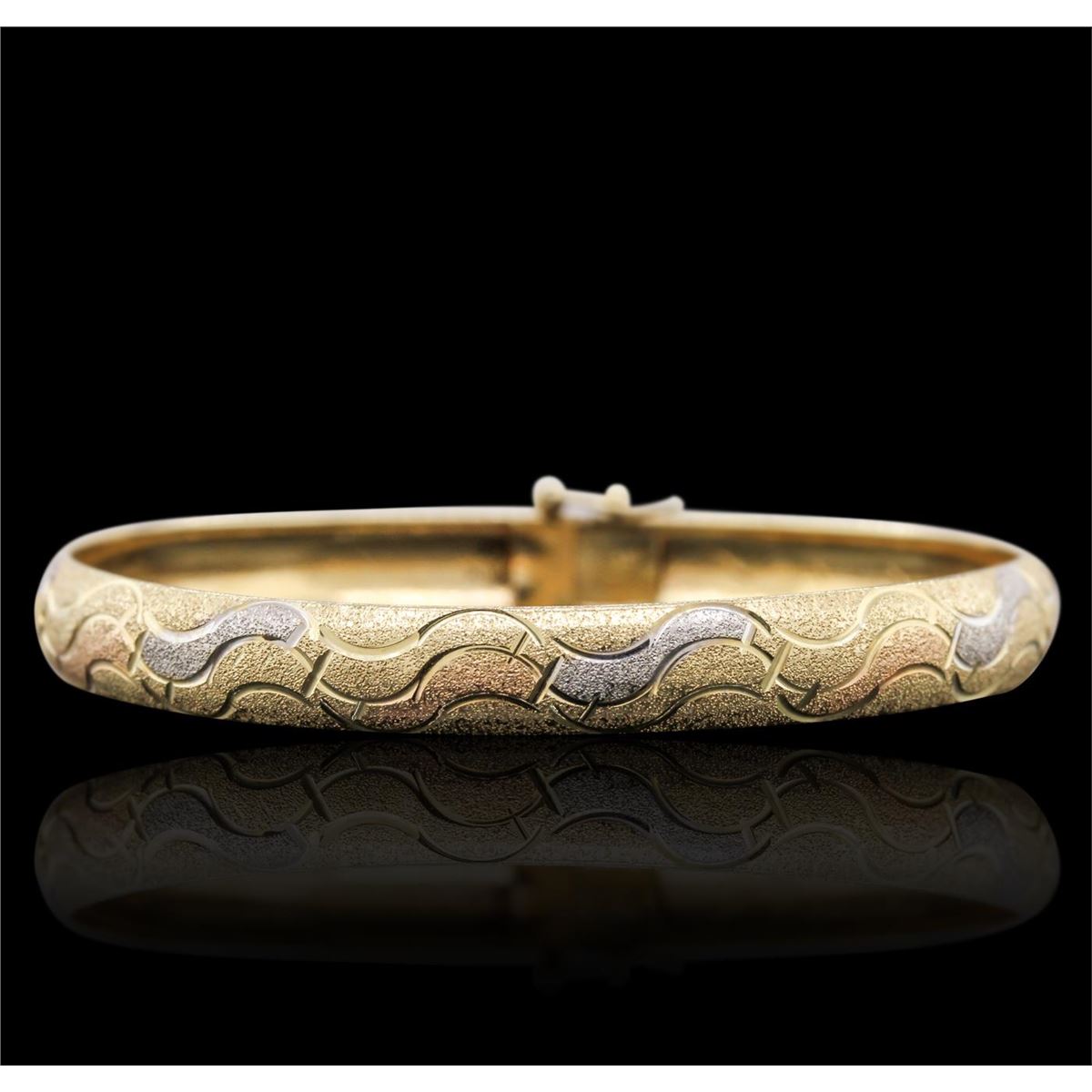 One bangle featuring: 14KT Yellow Gold with a total weight of 8.00 grams.
