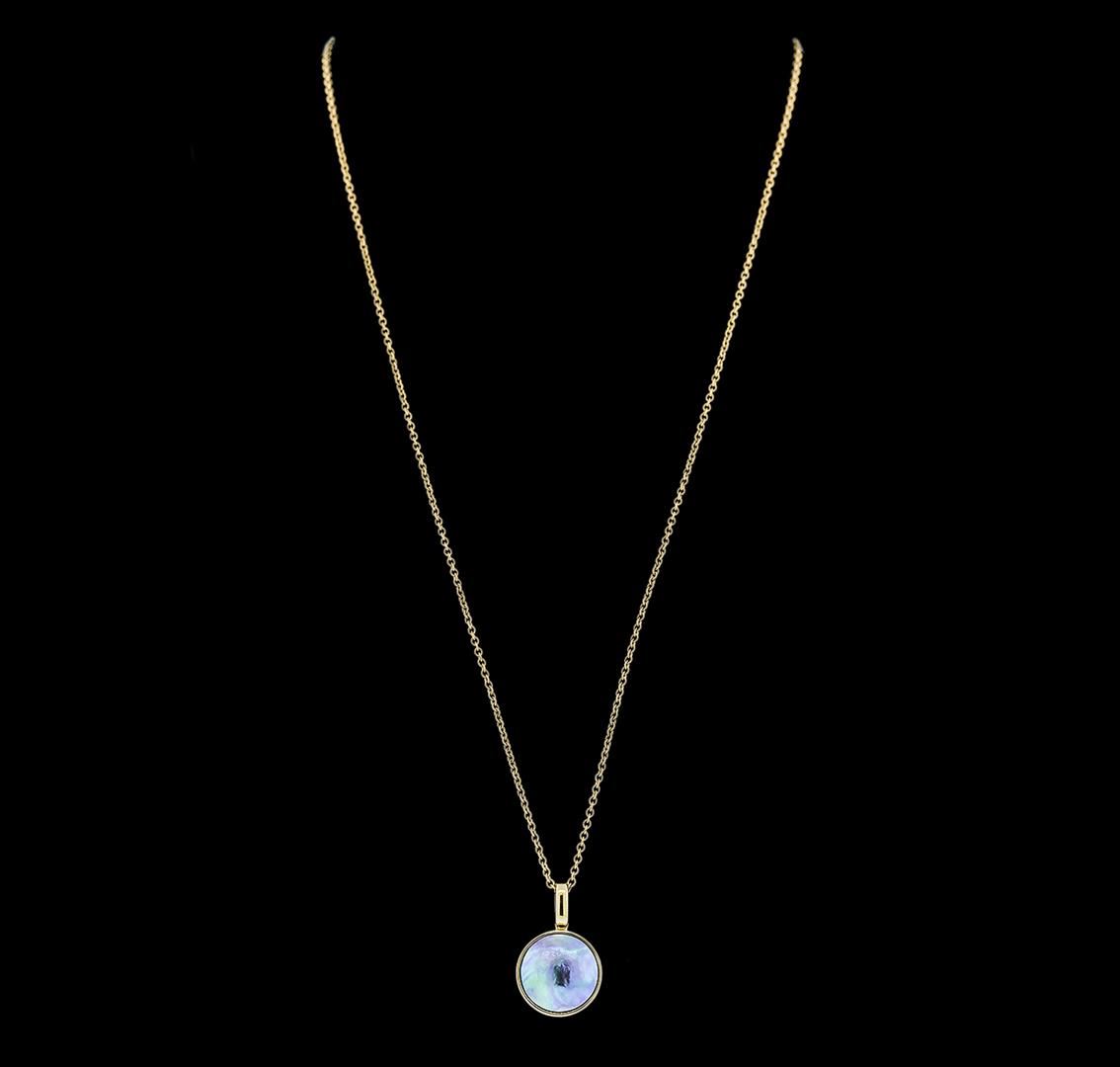 One pendant with chain featuring: 14KT yellow gold weighing 7.70 grams containing one mother of pearl.
