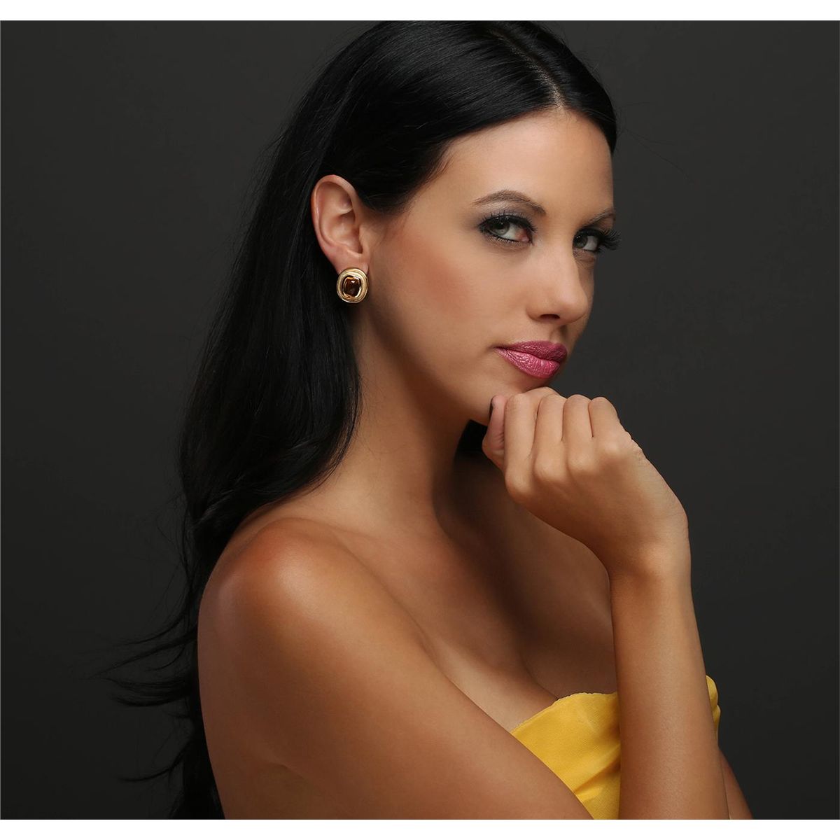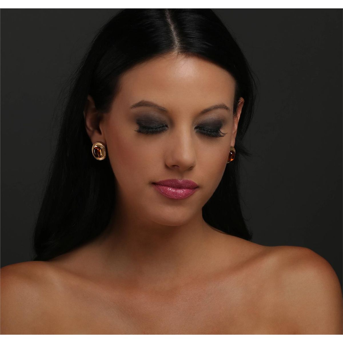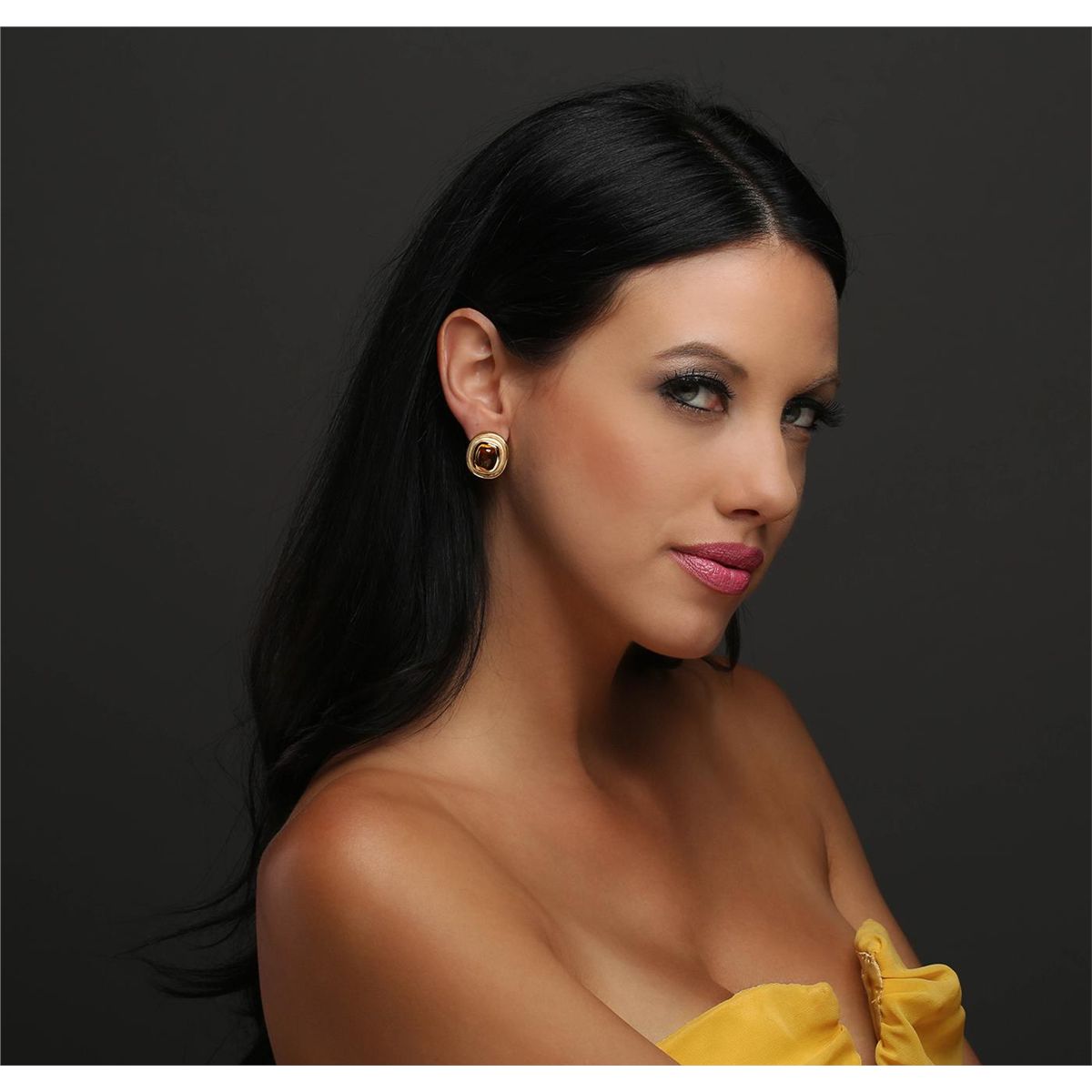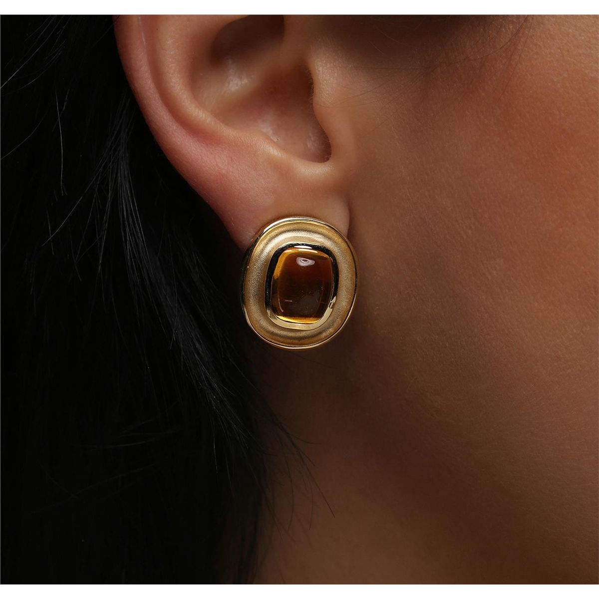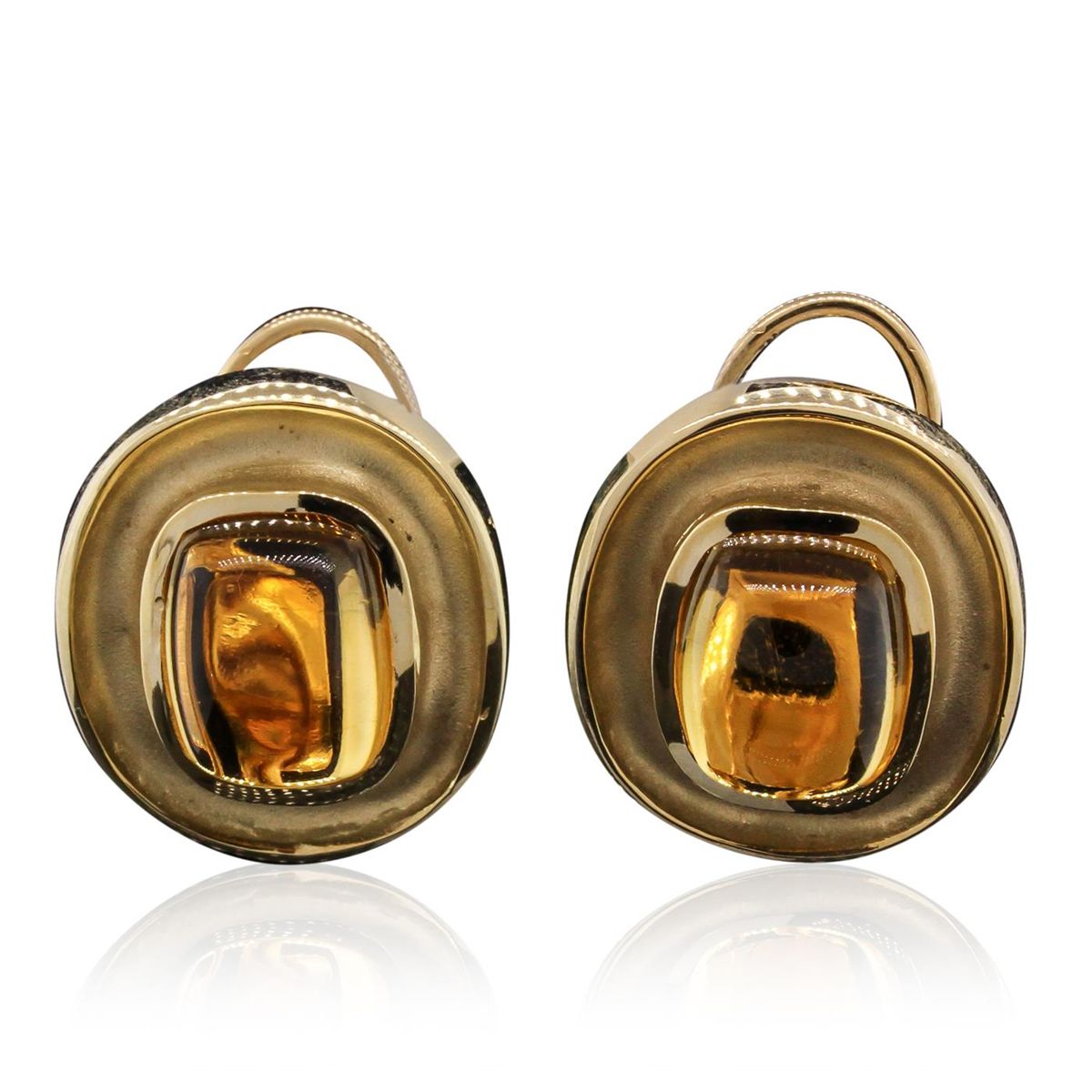 One pair of earrings featuring: 14KT Yellow Gold and Bezel Set Cabachon Citrine. Item weighs 12.10 grams.