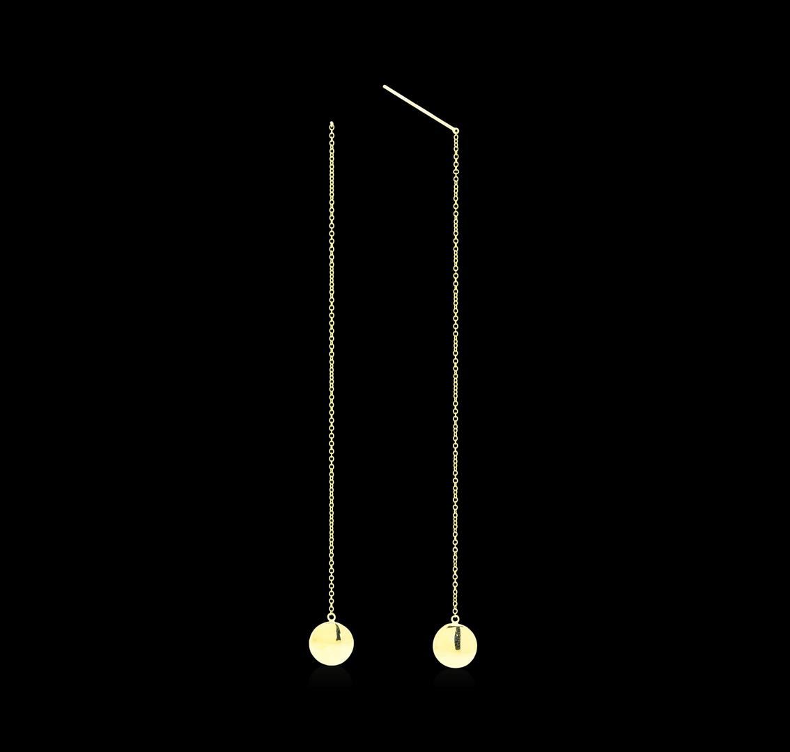 One pair of lady's dangle earrings measuring approximately 4.25 inches in length featuring: 14KT yellow gold weighing 4.0 grams.