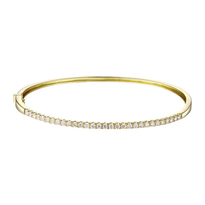 Listed below is the full description of the 14KT Yellow Gold Diamond Bangle pictured in this listing. If you have any other questions, please feel free to send us an e-mail. We will do our best to provide the information in a timely basis.SpecificationsJewelry InformationBrand, Seller, or Collection Name: UnbrandedCategory: BraceletCategory Style: BangleNew/Used: NewGender: FemaleMetal: 14KT Yellow GoldTotal Weight: 6.84 GramsTotal Diamond Weight: 0.75ctwTotal Weight all Stones: 0.75ctwInternal ID:7987-1Diamond 1Total Carat Weight: 0.75ctwClarity: I1-I2Color: H-IShape: RoundCut: FullCount: 30DisclaimersThe descriptions listed should not be construed as an appraisal. The detail is provided as a guideline for color, clarity, weights and measurements to the best of our ability. We welcome inspections. WE SHIP WORLDWIDE!This item has a Reserve established by our consigner.