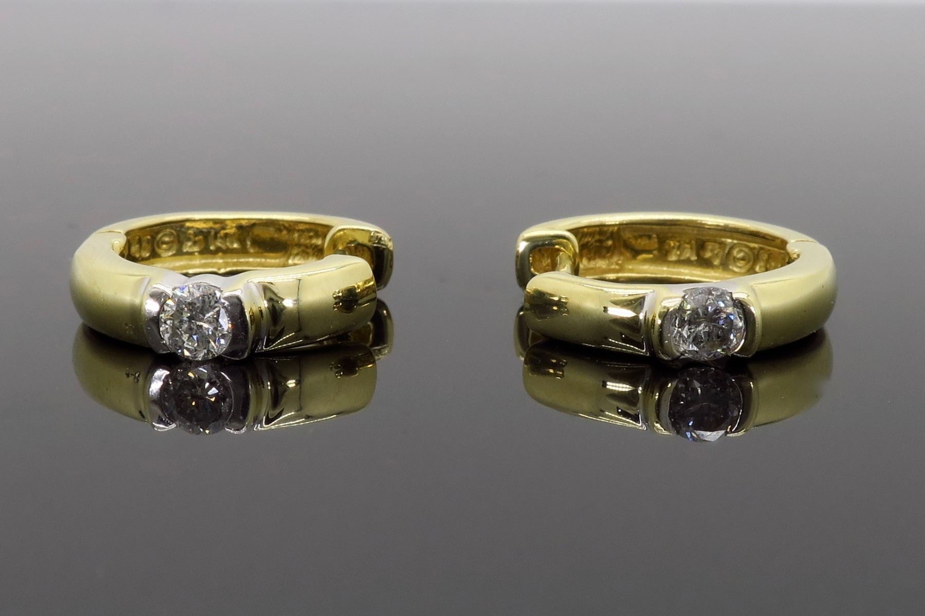 One 14KT Yellow Gold Diamond Earrings. (2) Round Diamonds with a total weight of 0.06cts with a color of H-I and clarity of I-1. Total weight of these earrings are 2.9 grams. Each earring is 0.50 inches long.