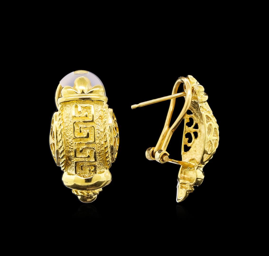 One pair of 14KT Yellow Gold Earrings. Total Weight: 6.2 grams.