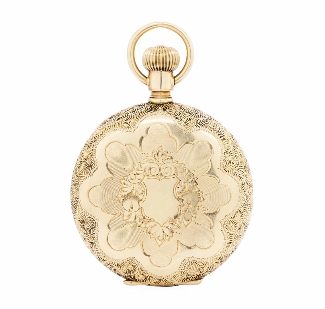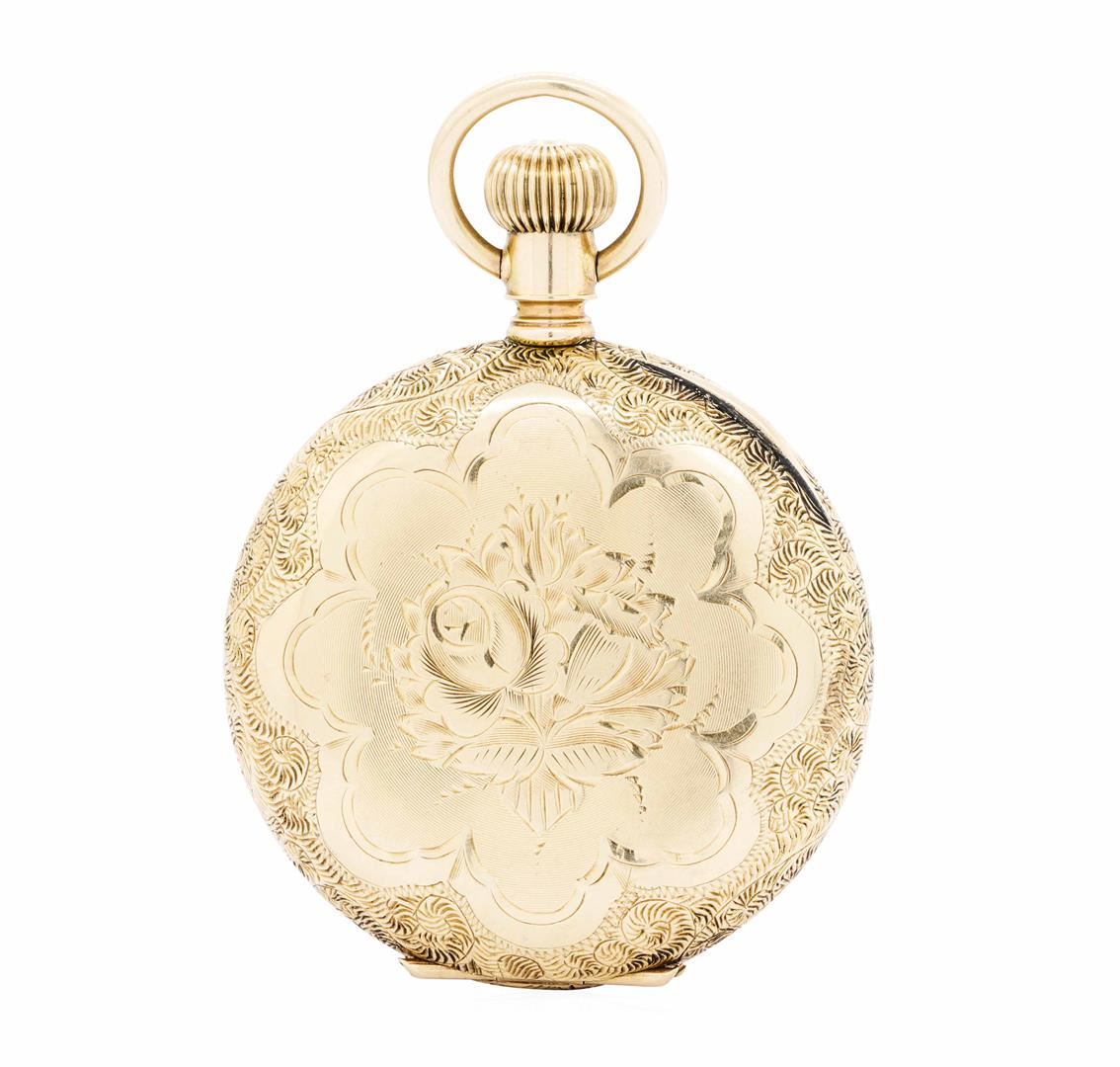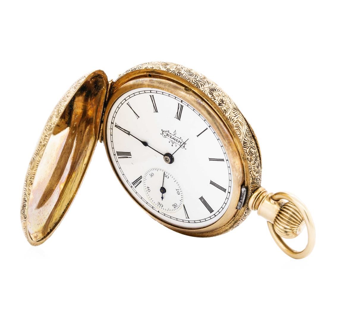 One non-operational manual wind Elgin pocketwatch without crystal featuring: 14KT yellow gold weighing 50.5 grams.