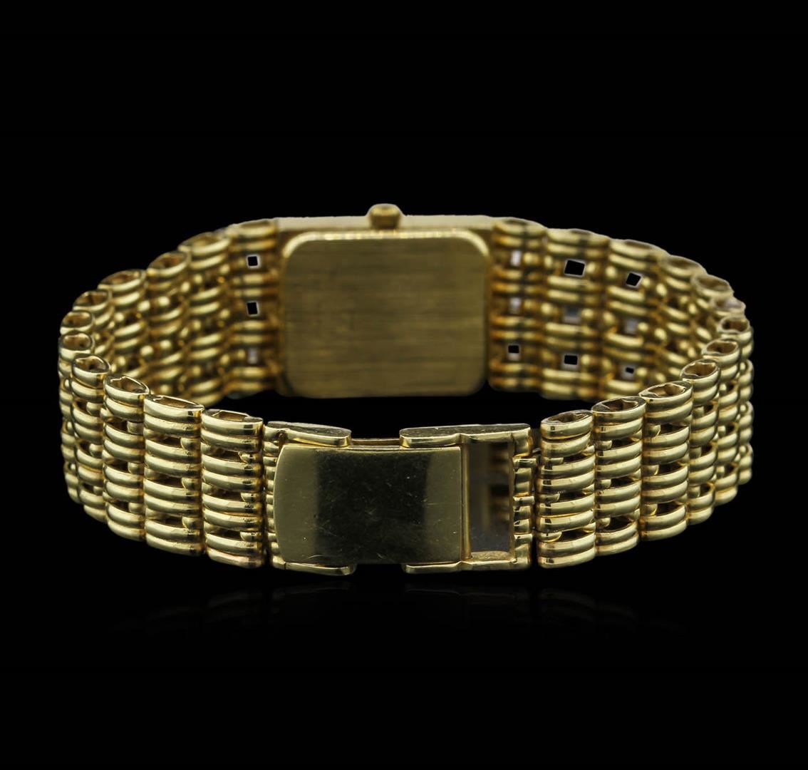 One 14KT Yellow Gold Geneve Supreme Wristwatch. Band: 14KT yellow gold. Dial: black marked swiss made.