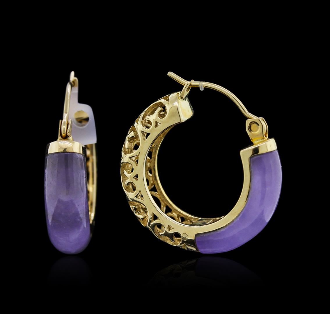 One pair electronically tested 14KT yellow gold lady's combination cast & assembled hoop style earrings with hinged, snap locking posts with a bright polish finish. Identified with markings of "14K". Condition is new, good workmanship. Containing: Two bez GAS Appraised at $2,125.00.