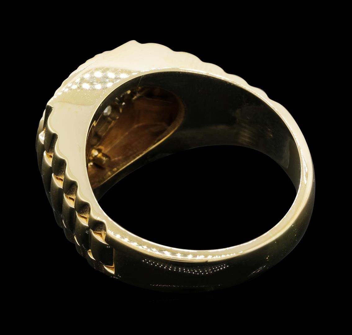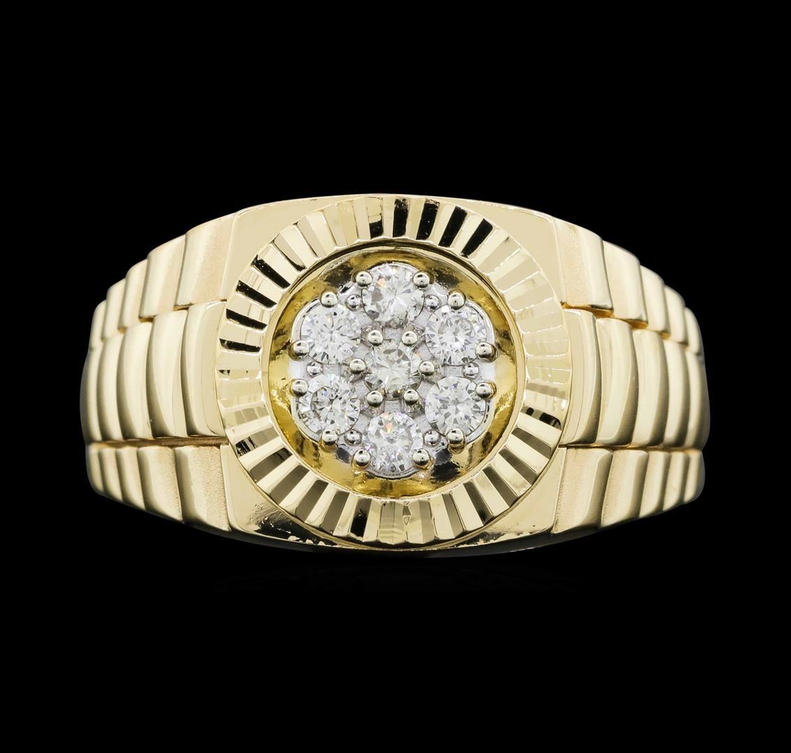 One Ladies ring featuring: 14KT yellow gold weighing 9.9 grams containing diamonds weighing 0.30ctw. The ring is a size 8.5.