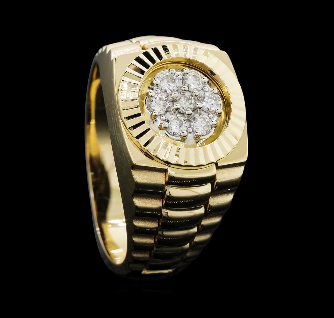 One Ladies ring featuring: 14KT yellow gold weighing 9.9 grams containing diamonds weighing 0.30ctw. The ring is a size 8.5.