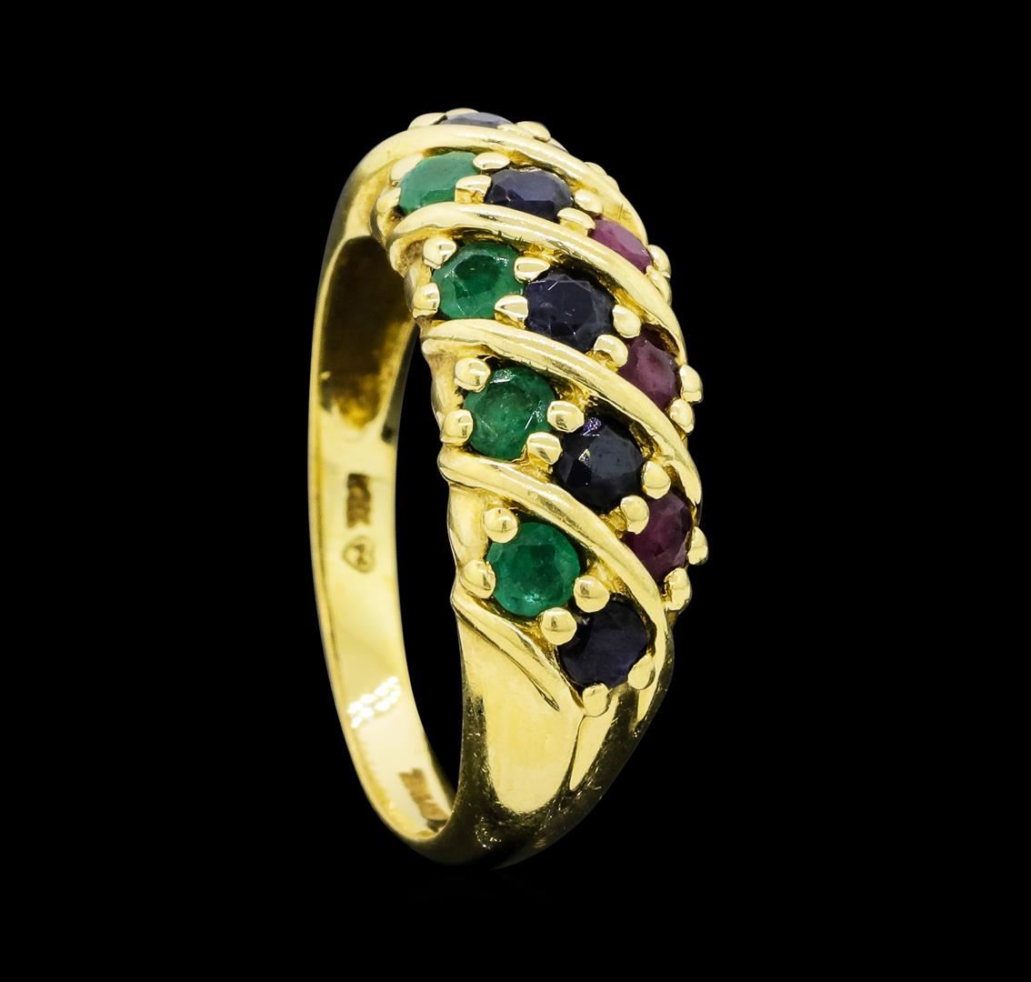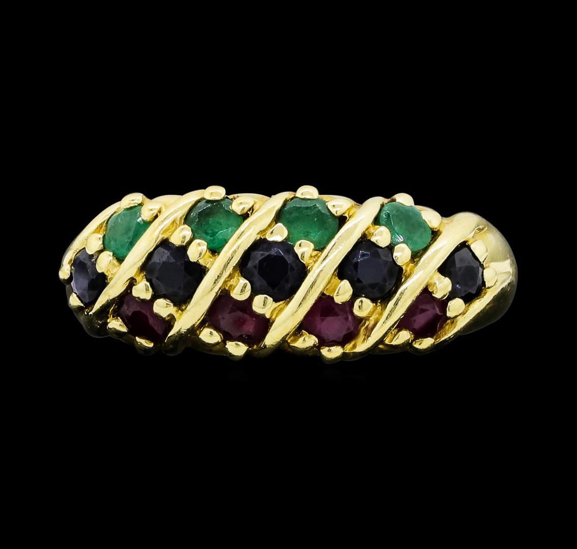 14KT Yellow Gold Ladies 0.50 ctw Sapphire, Emerald and Ruby Ring.