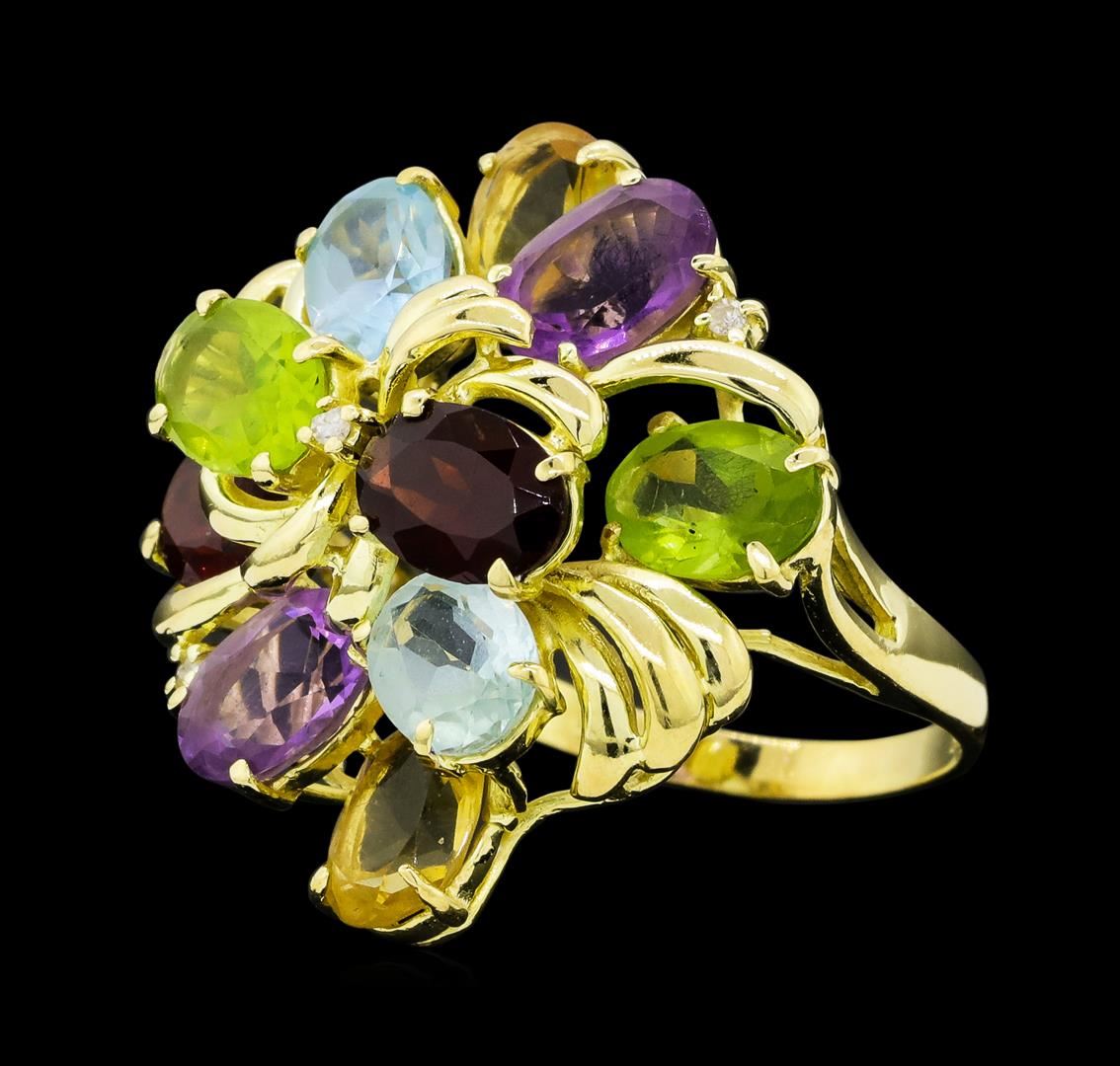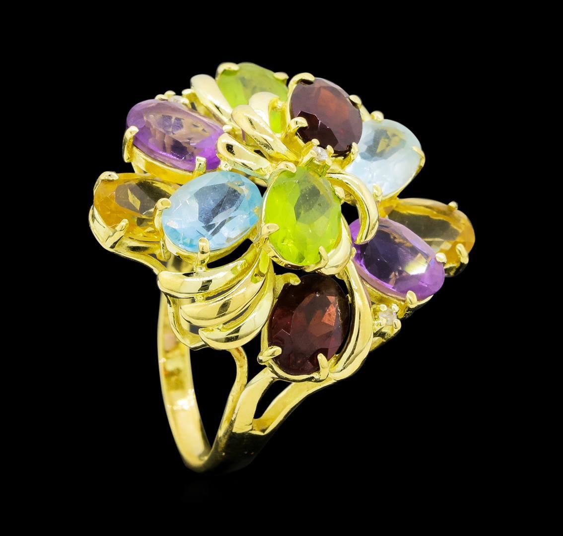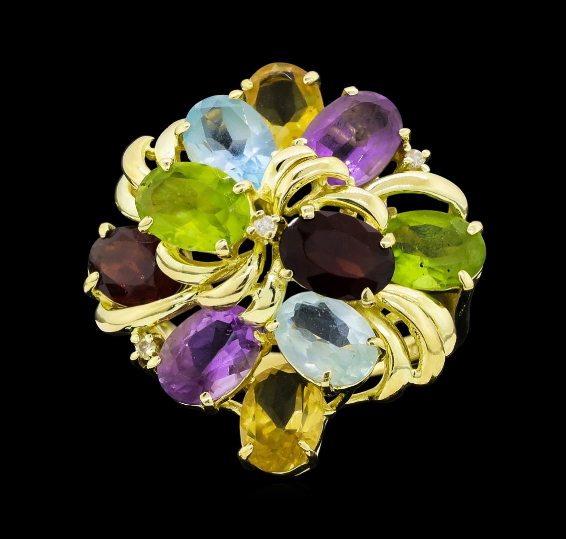 14KT Yellow Gold Ladies 10.00 ctw Multi-Color Semi-Precious Gemstone and Diamond Ring