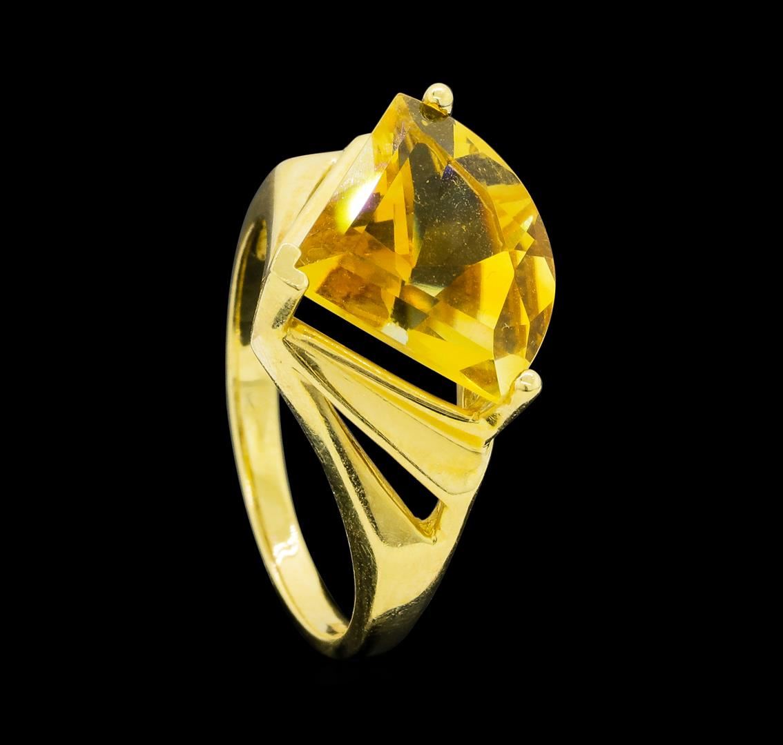 One lady's ring featuring: 14KT yellow gold weighing 4.6 grams containing one citrine quartz weighing 4.00ct. The ring is a size 8.