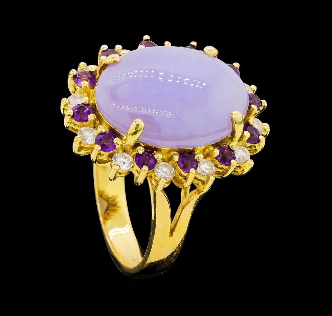 14KT Yellow Gold Ladies 6.32 ctw Jade, Amethyst, and Diamond Ring